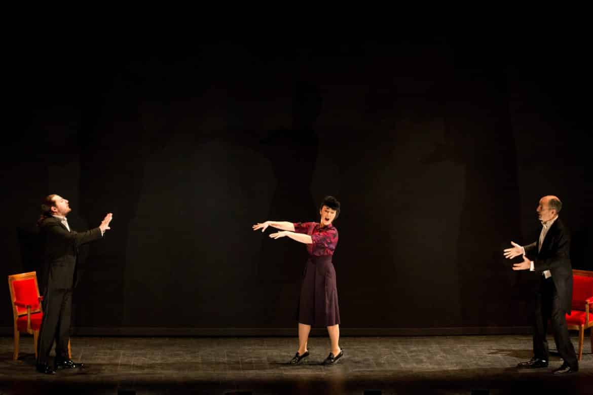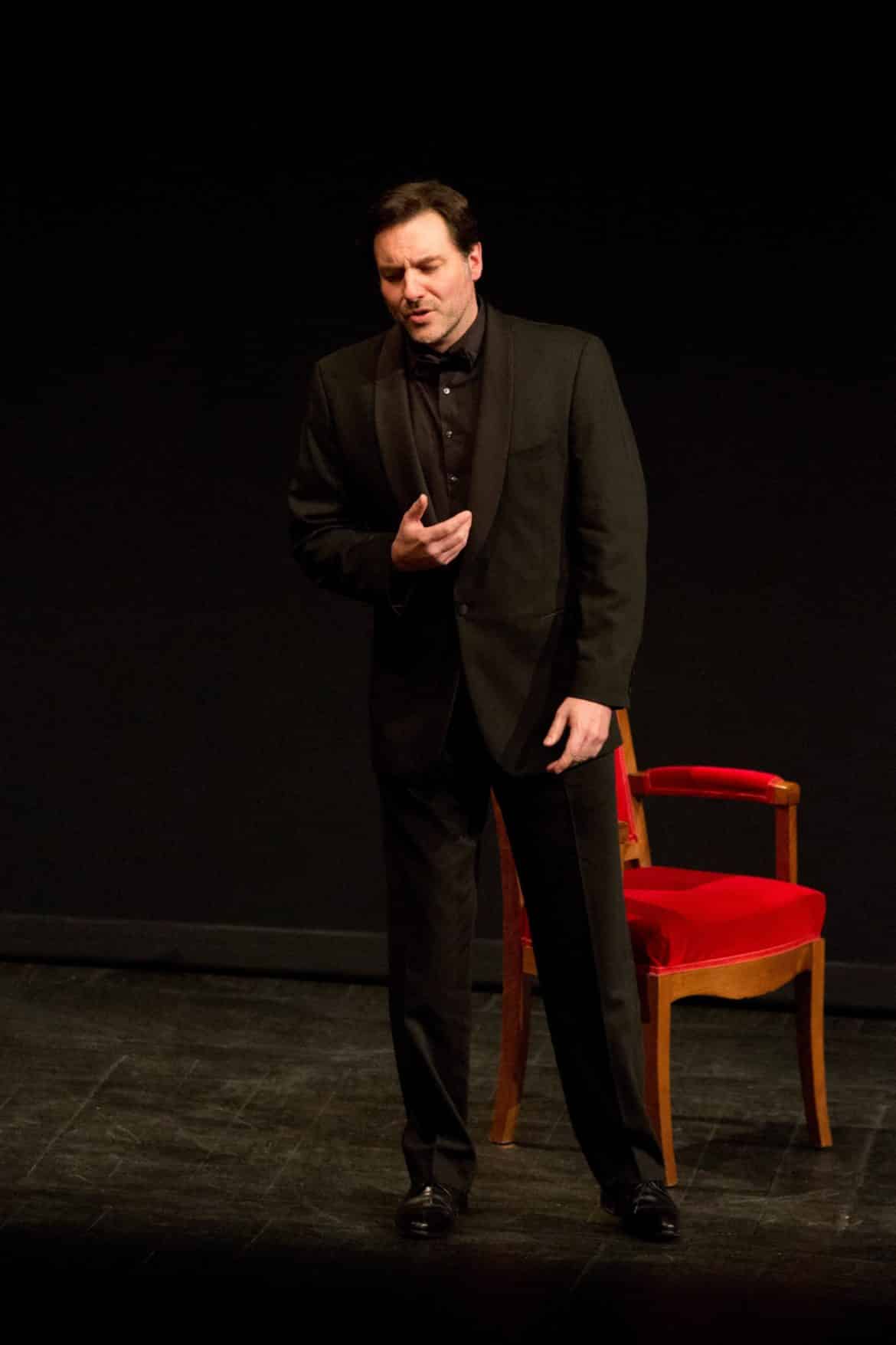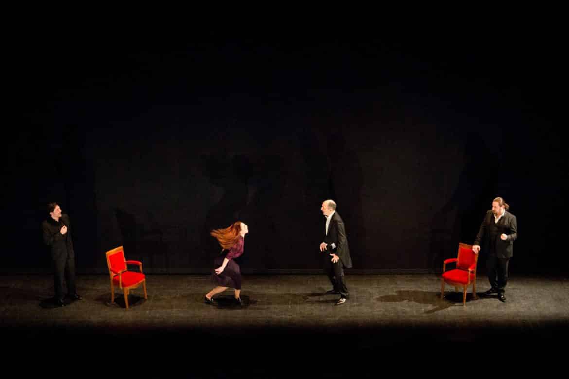 On avait annoncé une version de concert. Mais réflexion faite, il a été jugé plus pertinent de proposer, pour la captation, une mise en espace. Aussi a-t-on fait appel à Nicola Berloffa qui, avec quelques costumes, deux chaises et un fauteuil (et la participation de chanteurs qui s’avèrent être tous doués pour la comédie), rend parfaitement lisible l’intrigue – somme toute très simple – imaginée par le romancier, poète et librettiste Giovanni Ruffini, en en soulignant habilement les principaux ressorts comiques et dramatiques. Gageons que la captation, avec quelques plans resserrés sur les artistes, parviendra aisément à faire oublier l’absence de décors !