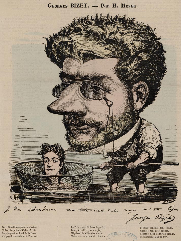 C’est à 24 printemps que Georges Bizet (1838-1875), jeune Prix de Rome, reçoit commande des Pêcheurs de perles de la part du directeur du Théâtre-Lyrique (Paris), désireux d’élargir le répertoire lyrique français. Quatre ans plus tard, La Jolie fille de Perth sera la seconde commande adressée au compositeur. Conseillé par son mentor Gounod, Bizet a jusqu’alors produit de courts ouvrages lyriques (Le Docteur Miracle, La Guzla de l’Emir) avant d’affronter le grand format de l’opéra, celui de ces commandes.