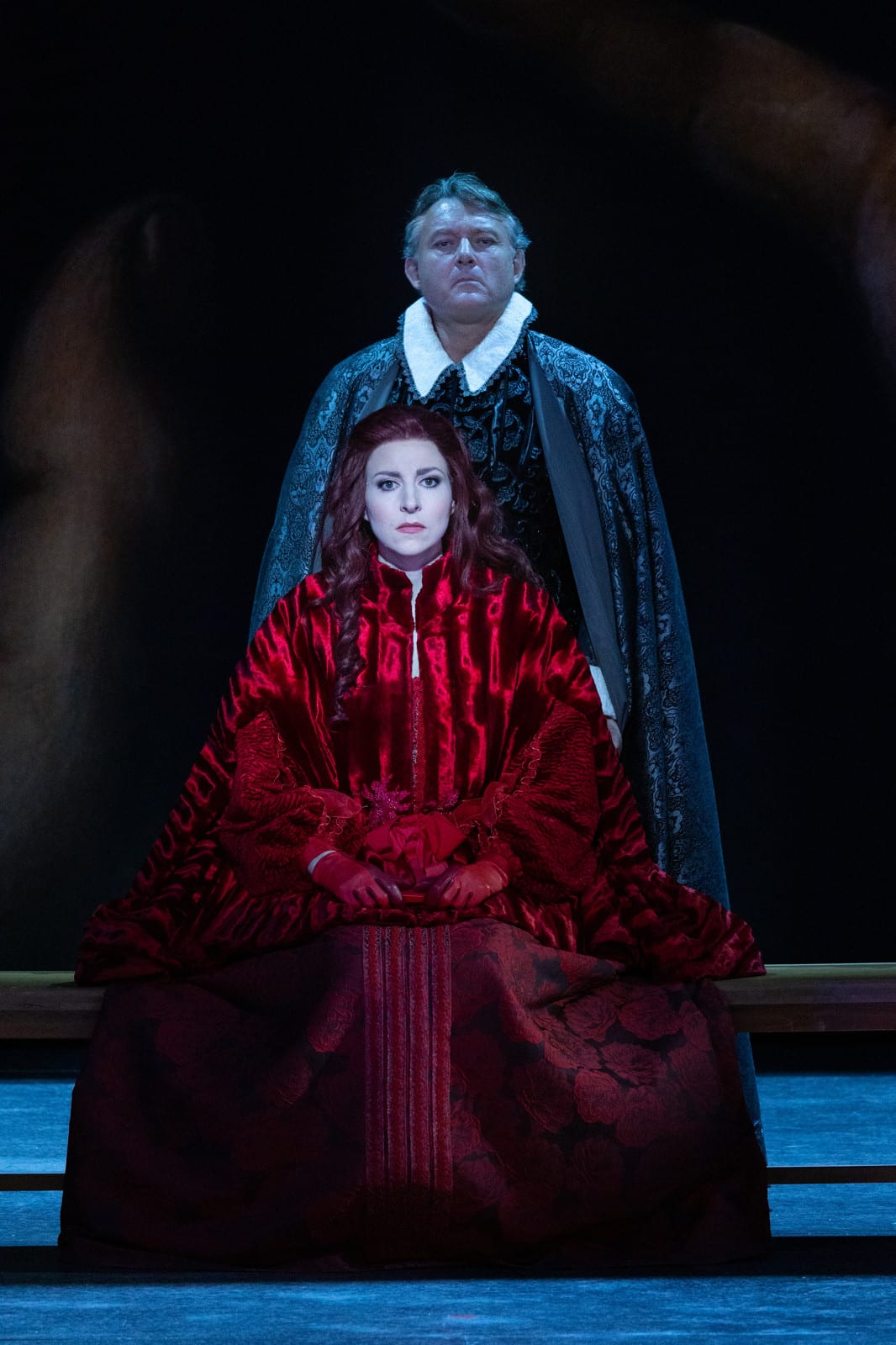 Le foisonnement de rôles est défendu par une distribution de très belle tenue, à la diction quasi impeccable d’un bout à l’autre des presque cinq heures de l’ouvrage. Ève-Maud Hubeaux se révèle une magnifique et magistrale Doña Prouhèze, modulant de son timbre charnu et riche d’harmoniques la palette des contradictions de son personnage, sans en sacrifier la noblesse. Son époux légitime, Don Pélage, revient à un Yann Beuron d’une réserve un rien altière et d’une clarté d’émission calibrées à la personnalité du rôle. Jean-Sébastien Bou fait valoir un Don Camille investi  aux côtés de la lumineuse Doña Musique de Vannina Santoni, laquelle endosse également la défroque de la bouchère. Camille Poul affirme la fraîcheur juvénile, fruitée et non dénuée de quelque témérité de Doña Sept-Epées, tandis qu’on ne manquera pas d’apprécier la vitalité lyrique et  parfois héroïco-comique de Julien Dran, tour à tour Vice-Roi de Naples, Saint Boniface et Don Ramire. Nicolas Cavallier imprime à Don Balthazar, Saint Nicolas et Frère Léon l’autorité paternelle attendue dans ces figures. Les duègnes et autres dames vénérables – Doña Isabel, Doña Honoria et la religieuse – siéent à une Béatrice Uria-Monzon parfaitement équilibrée, qui ne sacrifie pas la justesse de l’expression à l’intégrité du matériau vocal, quand Éric Huchet assume les ténors de caractère, du sergent napolitain au premier soldat, en passant par le capitaine, sans négliger pour autant une certaine complexité dramatique qui affleure dans son Don Rodilard. Confiées à une tessiture de contre-ténor, les phantasmes angéliques et religieux – l’Ange gardien, Saint-Jacques et Saint Adlibitum – rayonnent grâce à la virtuosité de Max Emanuel Cenčić. On appréciera les apparitions successives et contrastées de Marc Labonnette – père jésuite, Roi d’Espagne, Saint Denys d’Athènes, Don Almagro et deuxième soldat. Quant au solide Don Rodrigue de Luca Pisaroni, il cède ça et là à plus de rugosité que ne l’exige le personnage. Pour ce qui est de la partie exclusivement parlée dévolue à des comédiens, Cyril Bothorel – également chancelier et Don Léopold –  souligne avec un jeu souvent premier degré les didascalies de l’Annonceur, aux côtés de l’Irrépressible de Yann-Joël Collin, par ailleurs Don Fernand. Dans une relative imparité avec le reste du plateau, l’amplification microphonique de Yuming Hey homogénéise les répliques du Chinois Isidore, dispositif que l’on retrouve avec la Noire Jobarbara et la logeuse de Mélody Pini. On ne saurait enfin résister à la voix enregistrée de Fanny Ardant dans la méditation de la lune dans le Dialogue de l’ombre double qui clôt la Deuxième journée, caressant presque amoureusement la prosodie poétique.