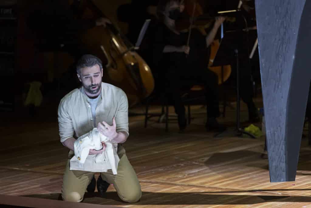 Son José est émouvant, mais l’incarnation peut être encore peaufinée vocalement (panel de nuances élargi, tenues de souffle plus longues,…– ce qui viendra probablement avec une plus grande fréquentation du personnage. Pour Stanislas de Barbeyrac, il s’agissait d’une prise de rôle (et peut-être d’un tournant dans sa carrière, comme il nous le confiait dans une interview à paraître). Le timbre est beaucoup plus clair que celui de son collègue, et si le registre lyrique lui est parfaitement naturel, cela ne l’empêche nullement d’assumer les éclats dramatiques du rôle avec puissance et crédibilité. Au total, il propose un portrait déjà très complet du personnage, et d’autant plus émouvant que le chanteur se double d’un acteur engagé et parfaitement convaincant.