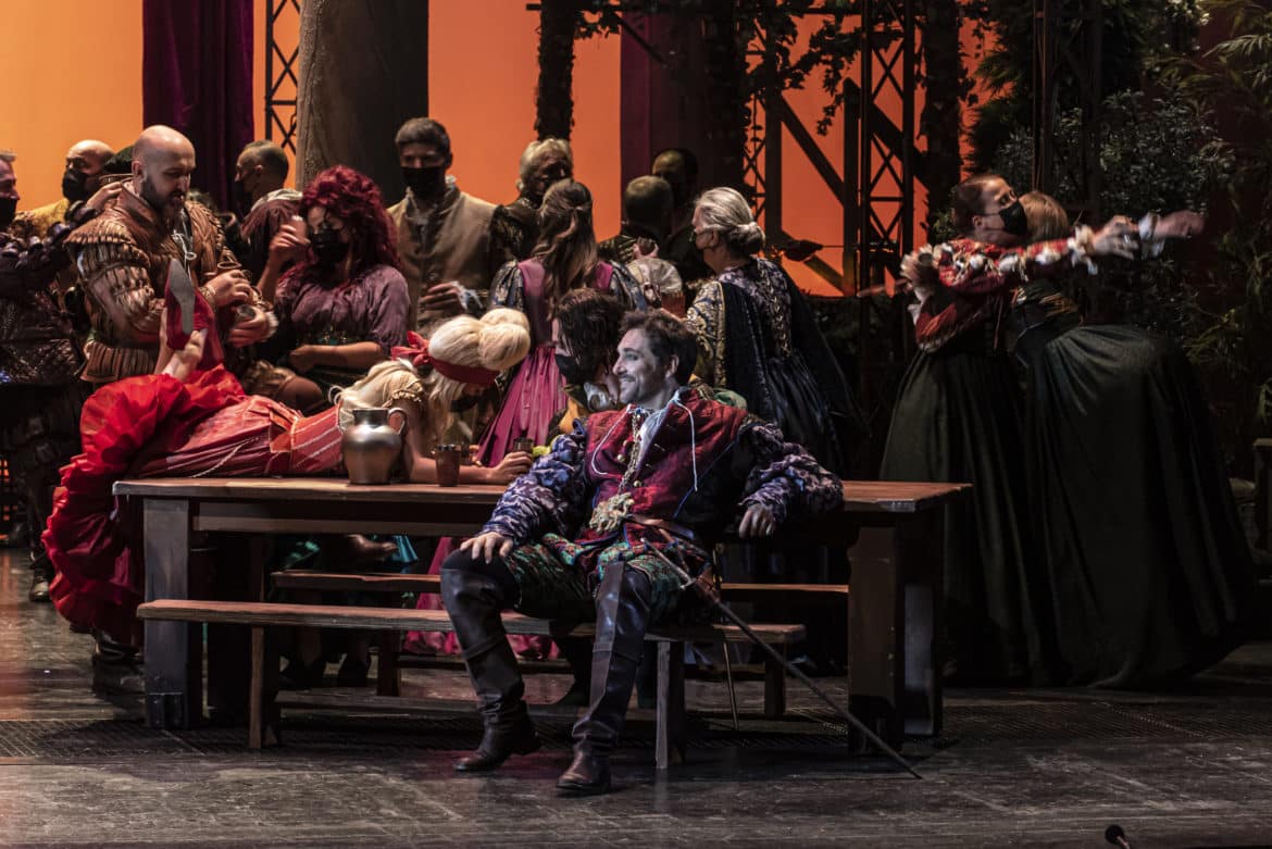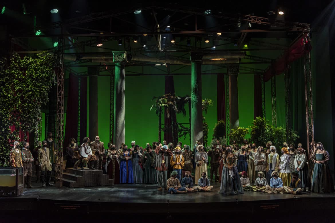 Quand Eric Blanc de la Naulte, le directeur de l’Opéra de Saint-Etienne, prend la parole à l’avant de la scène en préambule de la première d’Otello ce vendredi 11 juin 2021, c’est avec une certaine émotion, non seulement parce que la salle du Grand-Théâtre Massenet n’avait pas accueilli de public pour un spectacle d’opéra depuis le mardi 4 février 2020, lors de la dernière de Don Quichotte de Massenet, mais également parce que la série de représentations de l’ouvrage de Verdi est dédiée à la mémoire de Stefano Mazzonis di Pralafera, le directeur de l’Opéra de Liège et  metteur en scène de la production, et à François Bescobo, membre depuis trois décennies des chœurs de l’Opéra de Saint-Etienne, qui nous ont quittés récemment, et que saluent, mieux qu’une minute de silence, trente secondes d’ovation posthume debout.