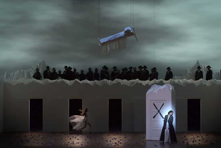Hélas, le reste du spectacle n’est guère à l’avenant. La mise en scène (Rolando Villazón) et la scénographie oscillent entre le déjà vu (plateau nu occupé non pas de chaises – pour une fois… – mais de bancs ; grands murs blancs percés d’une dizaine de portes – comme dans une production d’opéra sur deux aujourd’hui…), le ridicule (la chorégraphie façon Macarena pendant « Ah ! Vorrei trovar parole ») et le contre-sens : sous le prétexte qu’une fin heureuse « manquerait d’ambiguïté », Rolando Villazón, à l’encontre de tout ce que disent les mots et la musique, plonge Amina dans le désespoir : sa mère lui donne une valise et lui montre la sortie d’un air autoritaire, tandis que Lisa épouse Elvino… Le plus agaçant cependant reste cette manie d’encombrer l’intrigue de mille micro-événements : il n’est pas une scène qui ne soit parasitée par une péripétie (un enfant qui fait le pitre, Alessio et Teresa qui se disputent…), qui non seulement se révèle inutile, mais empêche de se concentrer pleinement sur la musique.