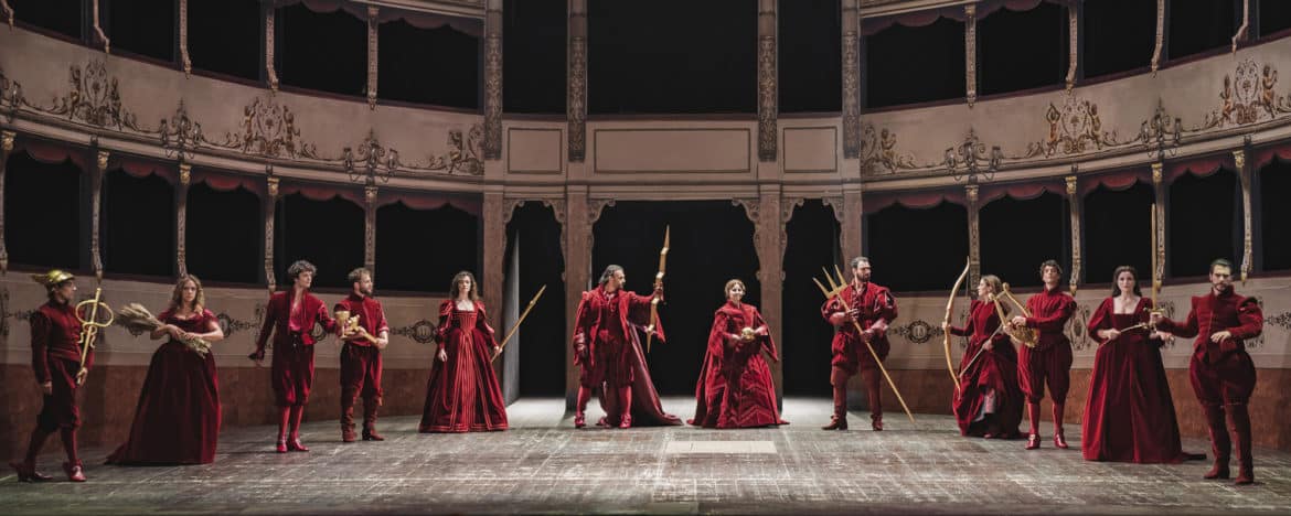 Trente-trois ans s’étaient écoulés depuis que Claudio Monteverdi avait scellé la naissance du « théâtre dramatique chanté », que les académiciens florentins considéraient comme l’équivalent du théâtre grec antique : chant, déclamation, moments parlés et dansés. Le texte constituait le premier plan et un continuo instrumental, ou basse « chiffrée », c’est-à-dire écrite, servait d’accompagnement. Les accords et les détails de l’instrumentation étaient laissés à la créativité des musiciens : seuls les « symphonies », les interludes et la musique des danses étaient écrits. C’était par exmple le cas pour L’Orfeo de 1607, créé à la cour des Gonzague à Mantoue.