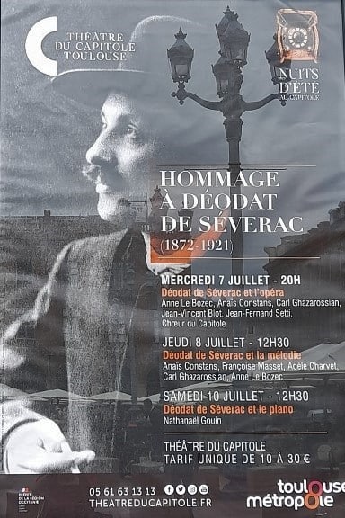 Après le premier « réveil déodatien » des années 70, stimulé par les enregistrements d’Aldo Ciccolini, nous espérons que le second soit déterminant ! Les festivals actuels de Céret, de Saint-Félix-Lauragais et cet Hommage du Capitole en sont les vecteurs, complétés par ceux de la recherche (colloque international Séverac à l’université de Toulouse) et de l’exposition Sur un air de Déodat de Séverac de la Bibliothèque d’Etude et du Patrimoine de Toulouse (jusqu’au 2 octobre 2021) :