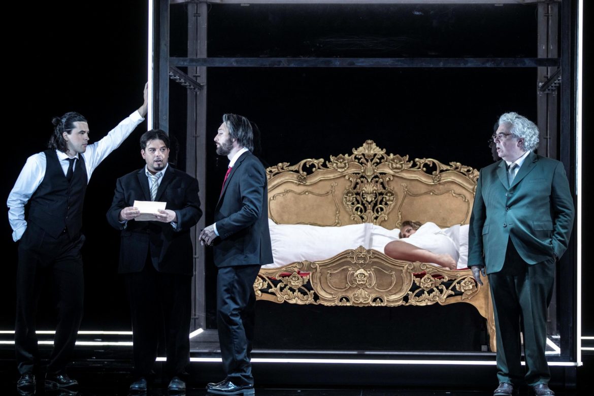 Le parti pris de Lotte de Beer de mettre l’accent sur l’inégalité homme-femme est né du phénomène Metoo. L’intrigue des Noces où le Comte Almaviva souhaite restaurer et user de son droit de cuissage sur la belle Susanna est totalement en adéquation avec la dénonciation des abus de pouvoir des hommes sur les femmes dans certaines sphères de la société et tellement d’actualité ! Mais tout cela est fait sans militantisme déplacé, avec finesse et humour, la mise en scène usant de la caricature pour mieux souligner le « combat » de la Comtesse et de Susanna et même celui de Cherubino qui refuse sa condition de jeune garçon qui doit obligatoirement entrer dans l’armée pour devenir un homme (et aussi pour l’éloigner de sa trop belle marraine, le Comte bien que frivole, est très jaloux).