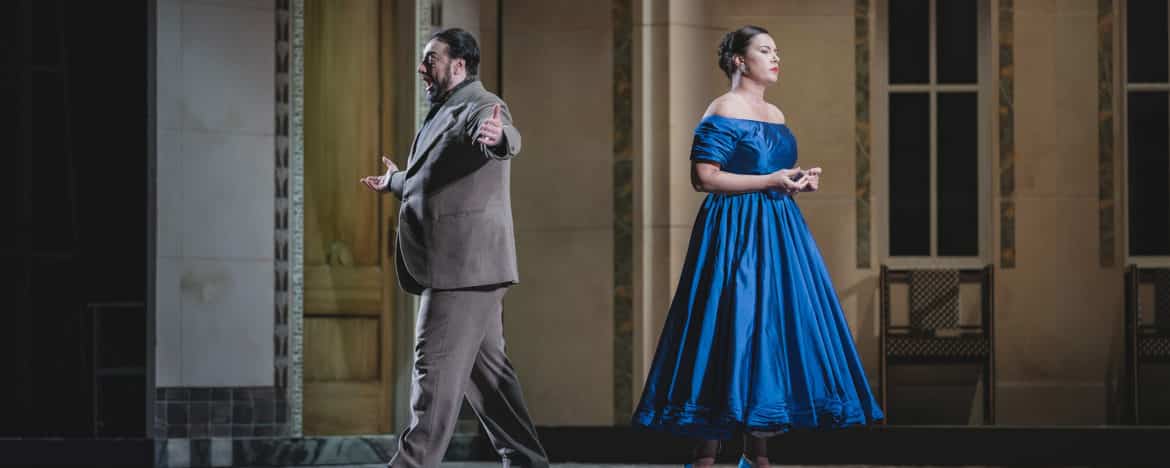 Gianandrea Noseda, qui réalise enfin son projet, lit la partition de Giordano comme s’il s’agissait de celle d’un de ses compositeurs russes préférés. Il n’est aucune subtilité instrumentale qui ne soit pas mise en valeur, qu’il s’agisse des sombres cuivres du thème de « Volga, Volga » ou de l’orchestre de balalaïkas de l’acte III, recréé ici avec une cithare, des mandolines et… un piano préparé (piano dont le son a été altéré en plaçant divers objets dans ses cordes) ! La vigueur et l’enthousiasme avec lesquels Noseda dirige l’orchestre du théâtre trouvent leurs meilleurs moments dans les pages symphoniques, comme le splendide prélude de l’acte II. Le volume sonore, la taille de la fosse d’orchestre et l’acoustique (non optimale) du théâtre font cependant que les voix sont souvent couvertes par les instruments, même si celles des chanteurs présents sur scène sont considérables. C’est en tout cas le cas de Sonya Yoncheva (qui avait déjà chanté l’œuvre à Montpellier en 2017), non pas une chanteuse vériste mais une interprète pleine de caractère de la figure de Stephana, « la beauté orientale ». La soprano bulgare, qui est passée de Händel et Monteverdi à Verdi et Puccini, fera ses débuts à la Scala l’année prochaine dans le rôle d’une autre ensorceleuse russe, Fedora, toujours de Giordano. Ici, en plus de son beau timbre et de ses aigus faciles, elle fait preuve d’une bonne diction et d’une présence scénique magnétique. Les aigus de Giorgi Sturua, en revanche, étaient un peu justes… mais le rôle de Vassili, créé pour l’instrument particulier de Giovanni Zenatello, un chanteur aux moyens vocaux énormes à l’époque, est tout sauf facile : le ténor géorgien s’en est finalement sorti avec honneur. Plus à l’aise dans son rôle, le Roumain George Petean doit rendre plausible un rôle comme celui de Gléby sans verser dans une méchanceté caricaturale. Les seconds rôles sont tous d’un bon niveau, du prince Alexis de Giorgio Misseri à la Nikona de Caterina Piva.