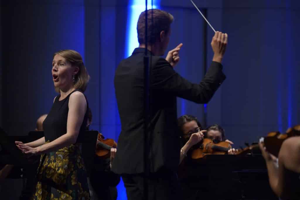 Au cœur du programme de la soirée, les Folk Songs de Luciano Berio (version pour mezzo et orchestre) recueillent un succès populaire auprès du public… de tout âge. Car la partition inventive forme quasiment un carnet de bord à elle seule. Sur 11 pièces, deux traversent l’Amérique (n° 1 et 2), puis l’Arménie (n°3), la Renaissance française (Rossignolet du bois), la Sicile et la Sardaigne (n° 5, 8), la Canzone italienne (n° 6 ; 7), l’Auvergne (dont les li-lon li-lon de la Fiolaire) avant d’accoster sur le quai de l’irrésistible Azerbaïdjan love Song. Avec l’excellente mezzo britannique Anna Stéphany, (lauréate du Concours Kathleen Ferrier 2015) et la complicité des solistes de l’O.J.M. (en particulier, les 2 altos, la flûtiste et le harpiste), le carnet de bord devient carnet de bal ! Sans outrance, avec un naturel généreux, un timbre gras sans lourdeur et une plénitude dans les aigus, la chanteuse s’adapte à chaque tradition populaire du cycle, à chaque langue aussi (le français, un peu moins). Alors que les interludes instrumentaux du I wonder as I wander (n°2) propulsent l’auditoire dans l’ambiance d’église, l’accelerando exubérant de Loosin Yelav (n° 3) ou la voix quasi travestie du Ballo (n°7) installent un climat de transe en quelques minutes. C’est bien sûr la danse festive de l’Azerbaïdjan love Song qui invite à la fête, avec ses guirlandes de piccolo entrelacées au chant expressif et théâtralisé. Sono tutti bravi !