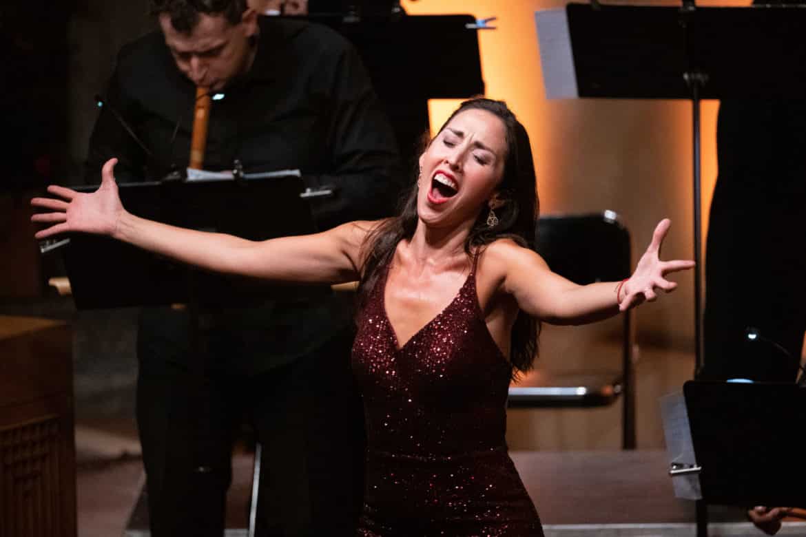 La soirée s’ouvre avec une Xácara por primo tono de Lucas Ruiz de Ribayaz, où couleur et rythme se mêlent dans un crescendo subtil, avant que Mariana Flores, soprano – et madame Alarcón à la ville – n’entre en scène décliner la tendresse de Serrat dans De vez en cuando la vida. L’ironie amoureuse sur une pulsation irrésistible de Esta vez Cupidillo de Francesco Valls est servie par le ténor Francisco Mañalich. L’insertion d’un intermède polyphonique de Dufay, De Sant Francisco, au milieu de Pare de Serrat, illustre l’instinct et la science musicaux remarquables de Cappella Mediterranea pour faire résonner avec naturel une anastomose de genres a priori hétérogènes. La soprano Maria Hinojosa Montenegro y démontre une belle synthèse entre diction et expressivité du timbre, à laquelle répond Mariana Flores dans la Romance de Curro el Palmo avec une sensualité feutrée. Dans une transcription pour piano et harpe espagnole, également de la main de Quito Gato, l’extrait des Música callada de Mompou, pianiste et autre figure majeure de la musique en Catalogne au vingtième siècle, confirme, presque comme une signature, la porosité inventive et poétique entre les styles et les époques.
