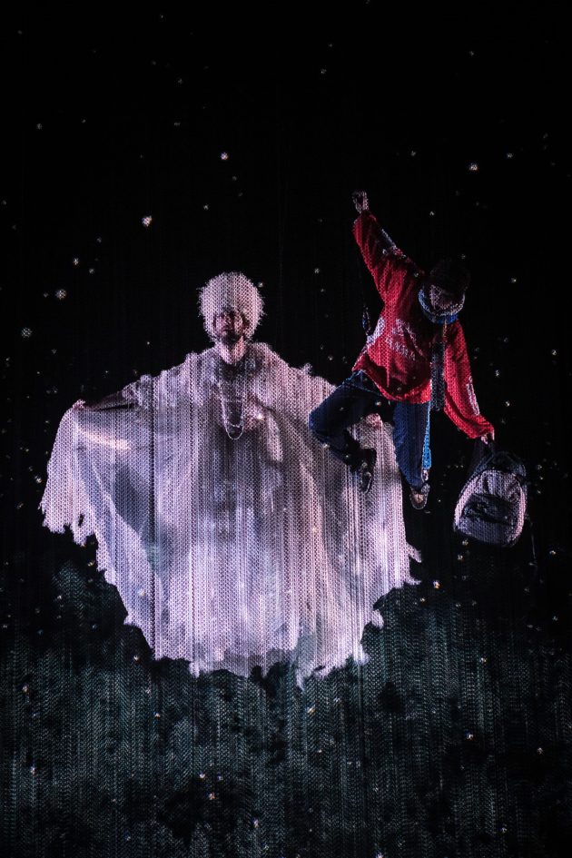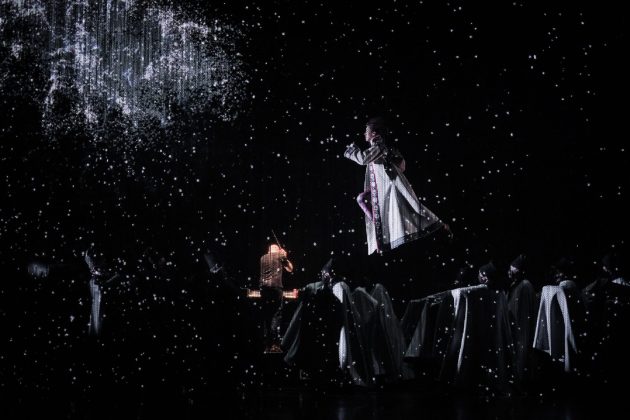 Quant au spectacle conçu par Grégoire Pont et James Bonas, il accompagne la traversée féerique façonnée par la musique. À l’avant de la scène, la scénographie presque vierge d’accessoires de Thibault Vancraenenbroeck, rehaussée par les teintes nocturnes et hivernales des lumières de Christophe Chaupin, met en valeur le travail d’animations et de vidéos de Grégoire Pont, dont on reconnaît la fluidité des formes, visages et éléments, parfaitement calibré pour l’illustration d’une œuvre sans iconoclasme promise à une fortune certaine. Cette troisième production ne devrait pas être la dernière.