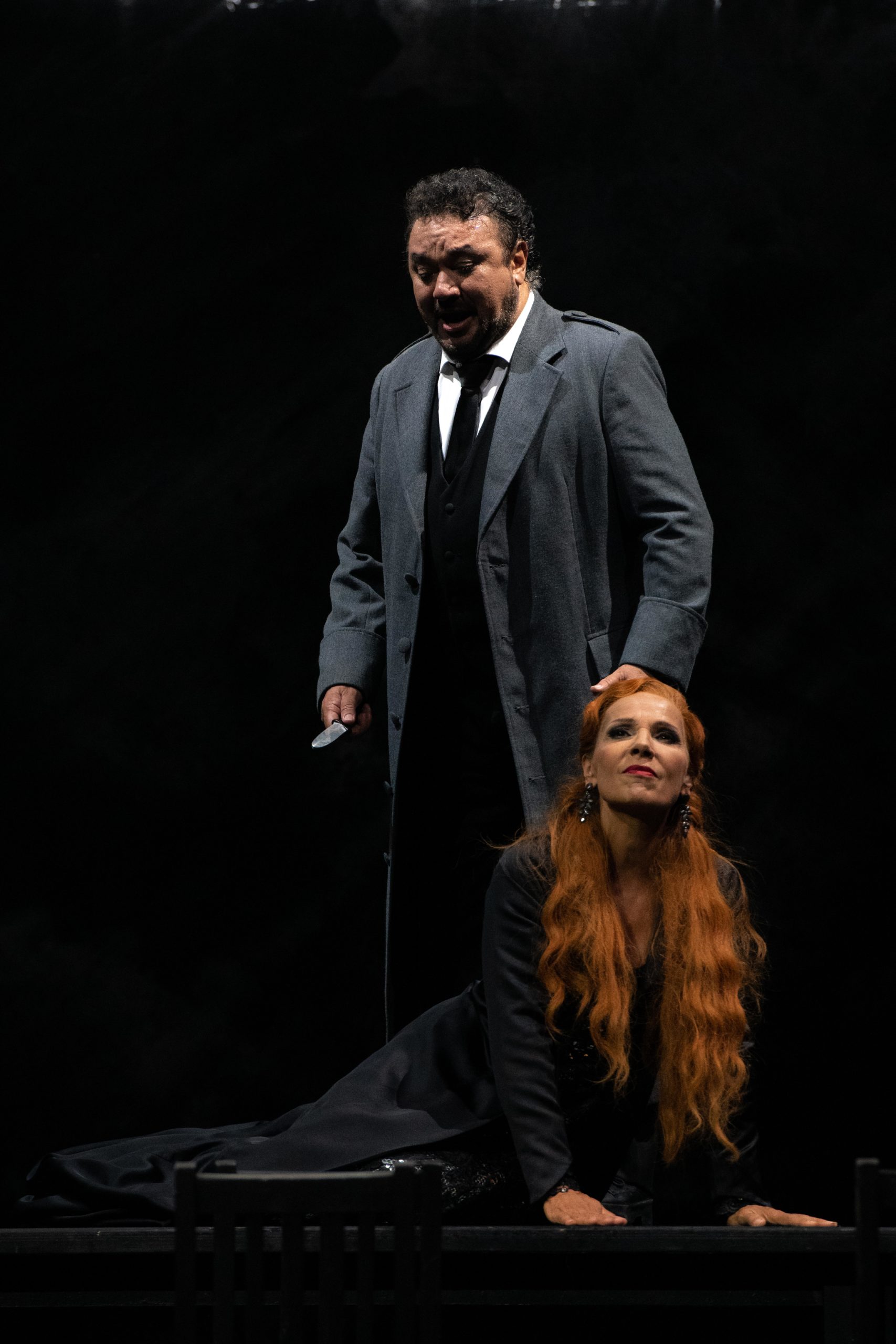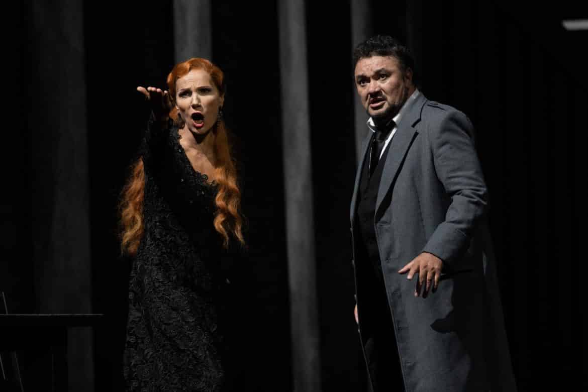 Du côté des femmes, le contralto de la Cieca (Agostina Smimmero, jeune artiste lauréate du concours Montserrat-Caballé), est poignant dans son air du 1er acte (Figlia che reggi il tremulo). Dans le duo mère-fille, il s’entrelace au timbre de cor anglais (excellente instrumentiste) de même tessiture. Dans le rôle de Laura, la mezzo roumaine Judit Kutasi (familière de Verdi, Giordano, Puccini) projette des aigus d’airain dans son apparition sur la passerelle (I) et s’épanouit tant dans l’altercation avec sa rivale (E un anatema !) que lors du duo nocturne avec Enzo (II). La performance de Béatrice Uria-Monzon en Gioconda est tout autant vocale que dramatique. Elle endosse ce rôle terrifiant de soprano dramatique, élargissant son emploi de mezzo, avec un don de soi et une humanité émouvante. Dans les airs avec chœur, elle claironne ses contre-si et contre-ut sans retenue, tandis que le grave en voix de poitrine creuse le potentiel d’une tragédienne (hors quelques graves décolorés). Toutefois, c’est au 4e acte qu’elle donne la pleine mesure de son engagement avec l’air pathétique attendu, Suicido, sans ménager son ardeur face aux hommes qui la condamnent : soit Enzo, l’amant qu’elle sauve, soit le cruel Barnaba, auquel elle se soustrait par le suicide.