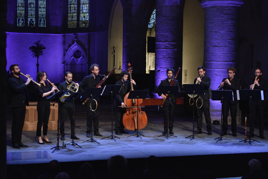 Leur succédant, l’ensemble français Sarbacanes présente un programme « Mozart : ombre et lumière ». Cet octuor à vent, complété d’une contrebasse, magnifie la Sérénade en ut mineur K. 388. Installés debout en demi-cercle, les instruments à anches (hautbois, clarinettes et bassons) et les cors naturels déploient une belle matière sonore au fil de mouvements chantant (si proches des Nozze di Figaro) ou brillants. Si la transcription de l’ouverture de Don Giovanni (par le viennois Josef Triebensee) est moins convaincante (certaine précipitation), le trio de l’Adagio canonique K. 410 fait valoir l’écriture concertante de clarinette et cor de basset (Arthur Bolorinos, Roberta Cristini) de facture XVIIIe siècle. Toutefois, la plénitude sonore est atteinte dans l’impressionnant interlude de Thamos K. 345, somptueusement assombri par les cors, un digne pendant d’une symphonie descriptive gluckiste.