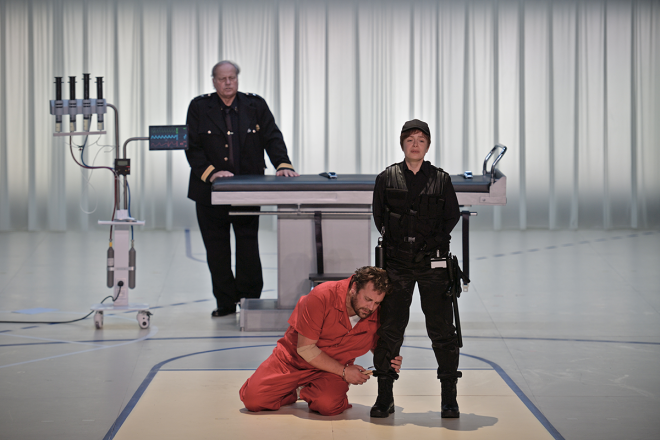 L’Opéra Comique fait sa rentrée avec l’unique opéra de Beethoven, Fidelio, confié à Cyril Teste, qui avait réglé en 2018 dans cette même salle Favart Hamlet d’Ambroise Thomas. Le metteur en scène français y reprend les mêmes injections vidéographiques, avec, entre autres, des gros plans sur les visages. Si dans le drame shakespearien, le dispositif mettait efficacement l’accent sur les tourments et les ruses d’Hamlet, le procédé tend à faire glisser la parabole morale du singspiel beethovénien vers une caractérisation plus naturaliste que corrobore l’actualisation du cadre de la geôle vers une prison contemporaine d’allure américaine et aseptisée, dessinée par Valérie Grall et rehaussée par les lumières de Julien Boizard, avec un vestiaire à l’avenant, conçu par Marie La Rocca. Le concept ne manque pas de trouvailles pertinentes, à l’exemple du prologue où l’on voit Leonore se muer en Fidelio par le renoncement à sa féminité extérieure, en se coupant les cheveux, ou encore dans le retournement de la caméra vers Pizarro, véritable arme qui démasquera le tortionnaire. Mais le rappel de la violence carcérale gratuite sur Florestan dans l’introduction, ou encore le meurtre transposé sur une table d’injection létale, prennent le parti d’un naturalisme qui, par ailleurs, émousse parfois la théâtralité symbolique du livret et de la musique. La cohérence relative du spectacle a cependant le mérite d’atténuer la teneur surannée du vaudeville au premier acte. La force de l’universalisme irradiant du message de Fidelio n’a pas nécessairement besoin de réalisme.
