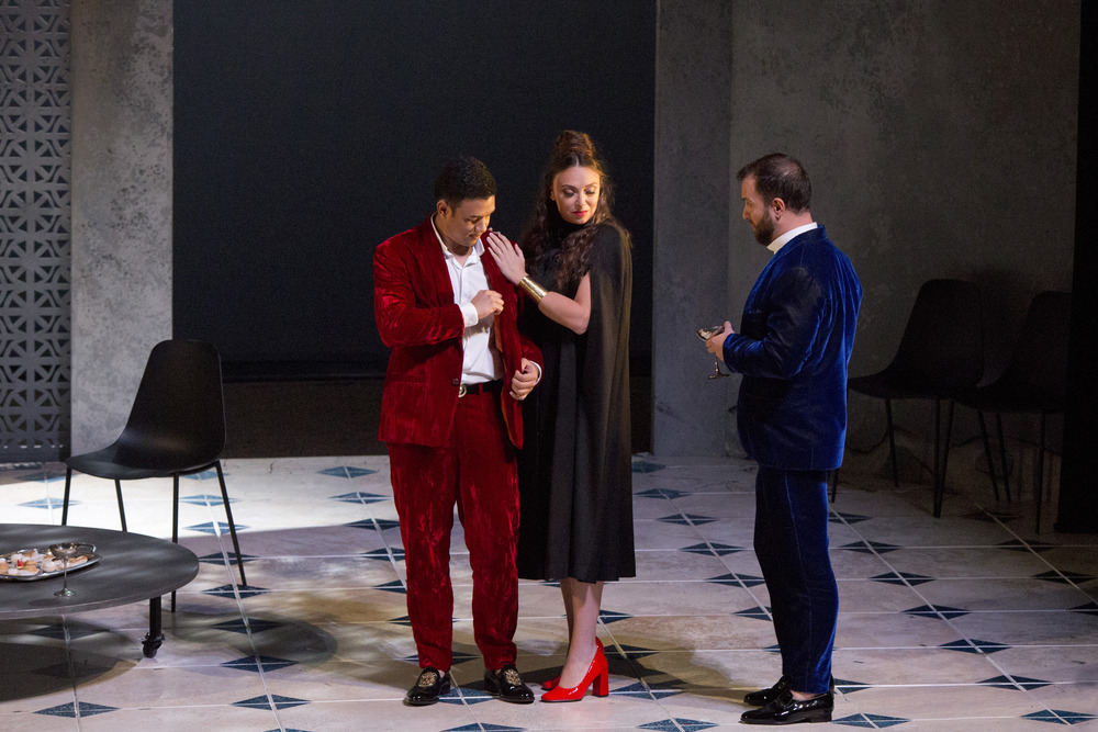 Développée avec un authentique sens de la tension dramatique et du suspense, la dialectique et le croisement des émotions du livret est magnifiée par l’opposition entre le Splendiano solide de Philippe-Nicolas Martin, qui, sous une apparence de feu passionnel cache des réactions égoïstes sinon phallocrates, voyant dans l’amour une conquête et une possession, et le Haroun de Sahy Ratia, cœur sensible et vulnérable sous une carapace d’indifférence donjuanesque. Entre le Saint-Saëns et le Bizet, le ténor malgache démontre une admirable palette expressive, soutenue par une ligne souple et la clarté de l’émission.