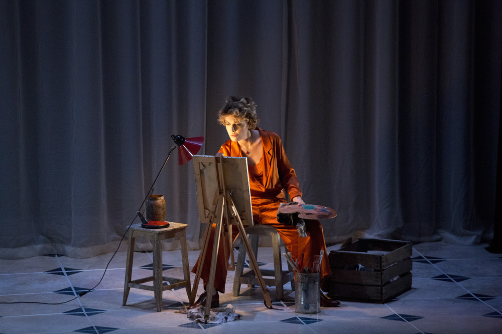 Après cette première partie, traitée de manière presque apéritive par une scénographie d’atelier aux allures d’antichambre astucieusement concentrée sur l’avant du plateau, et où l’estampe japonaise du décor dessiné par Salma Bordes se nimbe, à l’heure où Kornélis tombe dans les bras des phantasmes, d’évanescences lumineuses, calibrées par Olivier Oudiou, Djamileh investit l’ensemble de la scène, avec un décor aussi économe et épuré dans l’orientalisme exotique. Suggéré par un panneau de motifs abstraits vaguement mauresques, l’Egypte et le colonialisme – avec amours que l’on achète comme des esclaves – ne dépassent pas le cadre pittoresque, accompagné par la sobriété des costumes imaginés par Léa Perron, et les sensuels déhanchements chorégraphiques de la nouvelle recrue pour les plaisirs d’Haroun réglés par Sonia Duchesne.