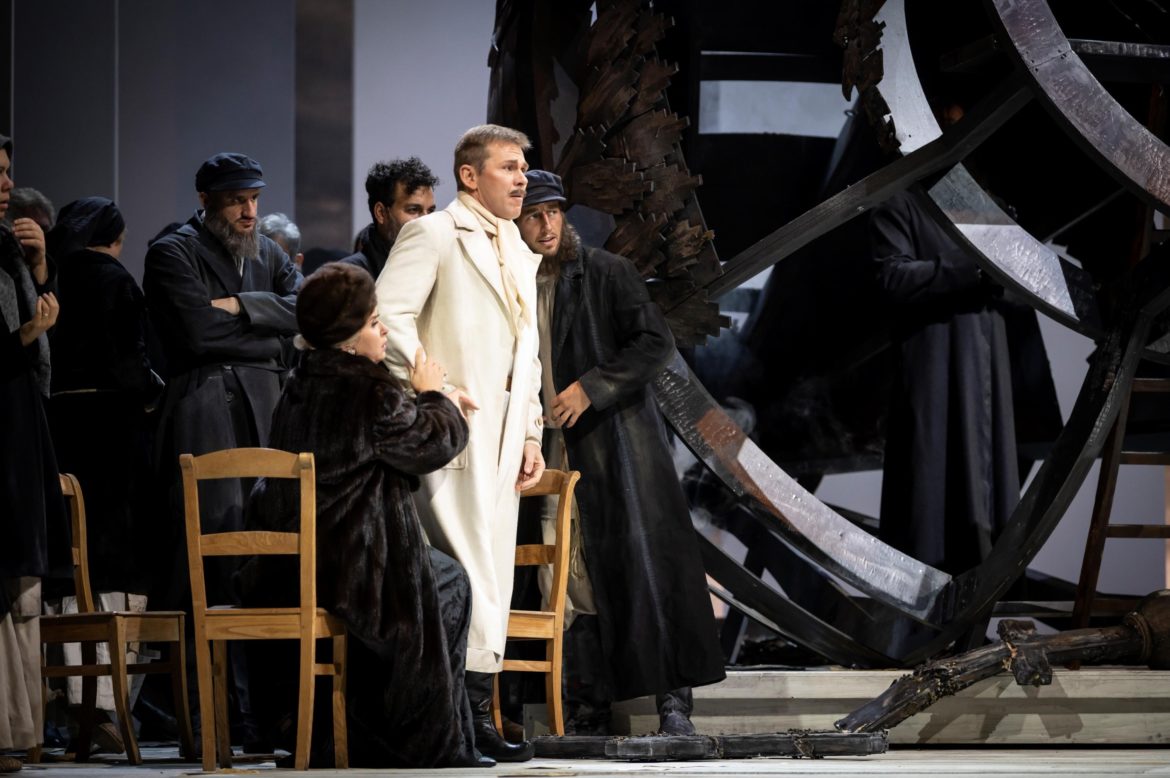 Tout cela ne serait pas très grave si l’émotion était au rendez-vous, mais ce n’est pas toujours le cas… L’affrontement entre Onéguine et Lenski par exemple, l’une des scènes les plus fortes de tout le répertoire lyrique, laisse de marbre… Le dernier acte est plus convaincant, avec cette Tatiana devenue une star de cinéma adulée des foules, mariée à un haut dignitaire bolchevik, et le duo final chanté sous l’œil de Grémine dont les sbires se saisiront d’Onéguine après que Tatiana l’aura éconduit, sans doute en vue d’une exécution sommaire… Mais le fait de montrer Tatiana présentant à ses invités son dernier film (Jalousie) pendant l’air de Grémine est une fausse bonne idée : il faut tout le talent d’Ildar Abdrazakov pour continuer à écouter et regarder le chanteur et rester concentré sur la musique pendant que défilent derrière lui les images en noir et blanc dudit film…