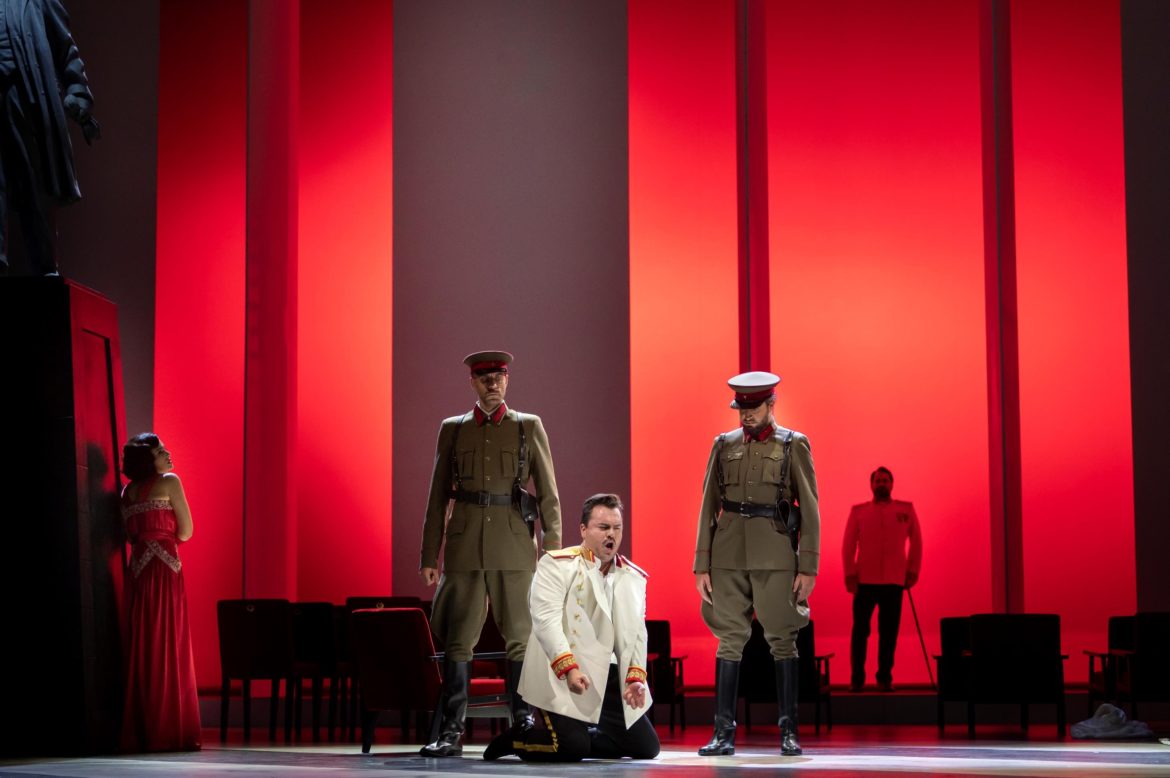 On en a vu d’autres : La Bohème sur la lune, Iphigénie dans un Ehpad, Tosca chez les nazis, Le Vaisseau fantôme dans un centre de fitness… Alors pourquoi pas Onéguine chez les Soviets ? Même si rien, mais absolument rien, ni dans le poème de Pouchkine, ni dans la musique de Tchaïkovski, n’annonce la révolution sociétale et politique à venir – et encore moins l’avènement du communisme –, on serait prêt à accepter cette relecture