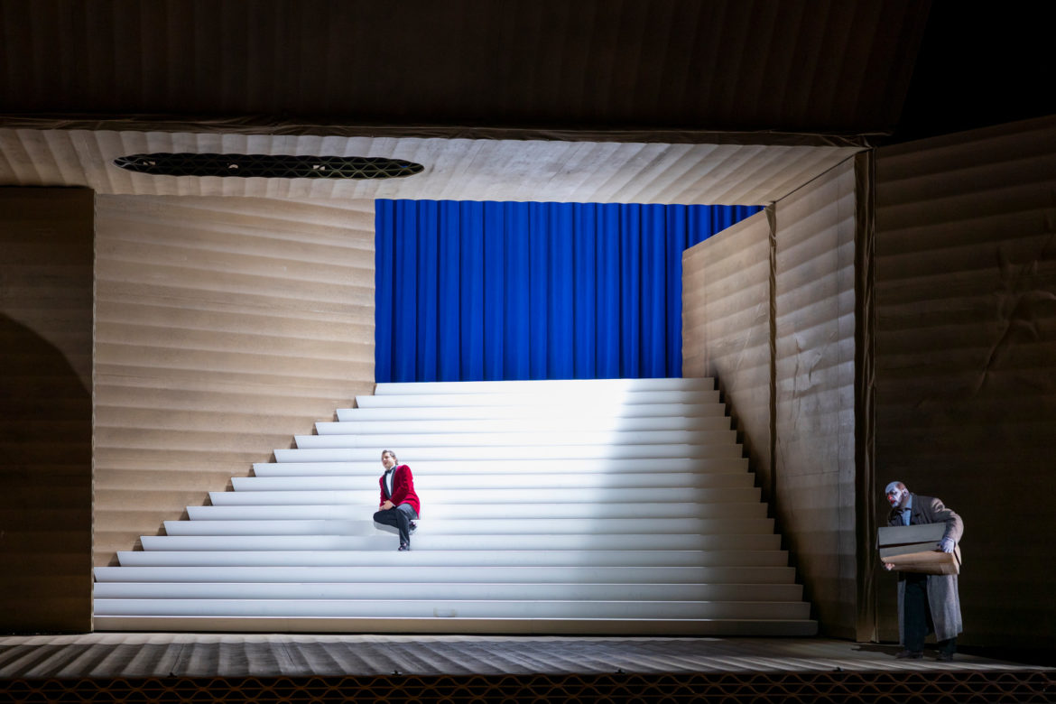 Avec cette production de Rigoletto de Verdi signée Claus Guth, l’Opéra National de Paris fait étalage de luxe vocal où brillent les étoiles de Ludovic Tézier, Nadine Sierra et Dmitry Korchak. Un drame dans une boite en carton mais bien absent de la fosse d’orchestre.