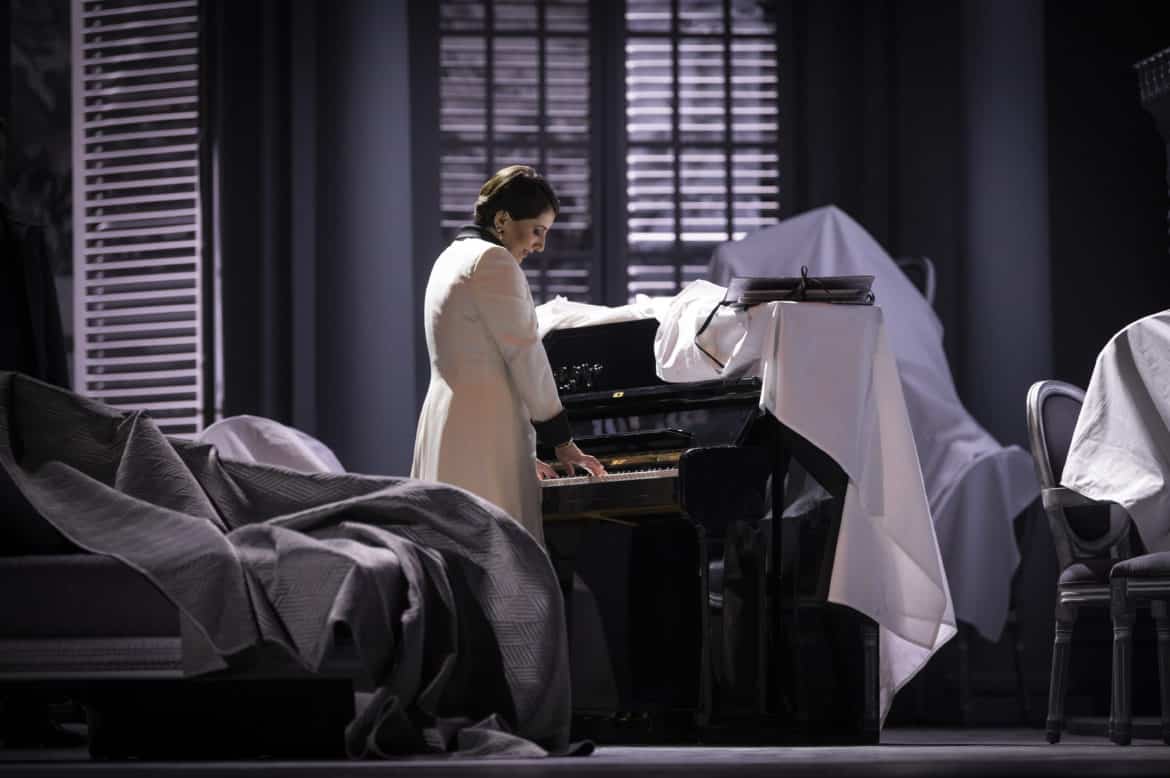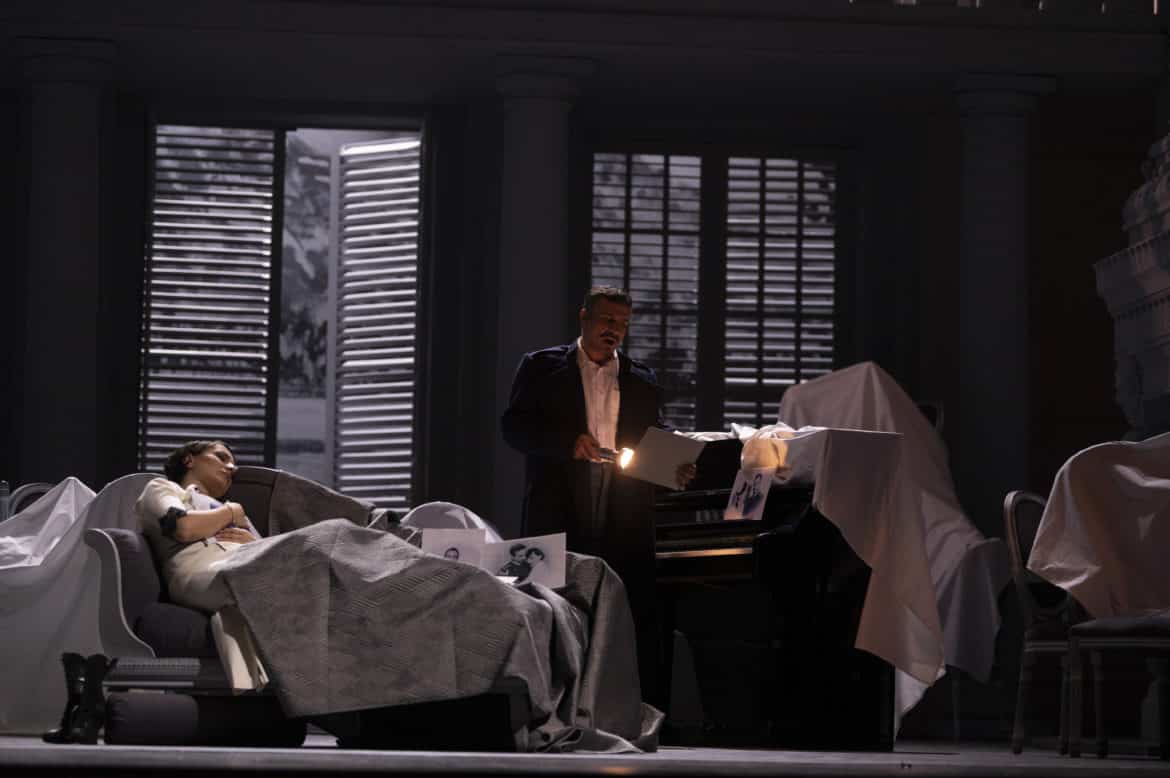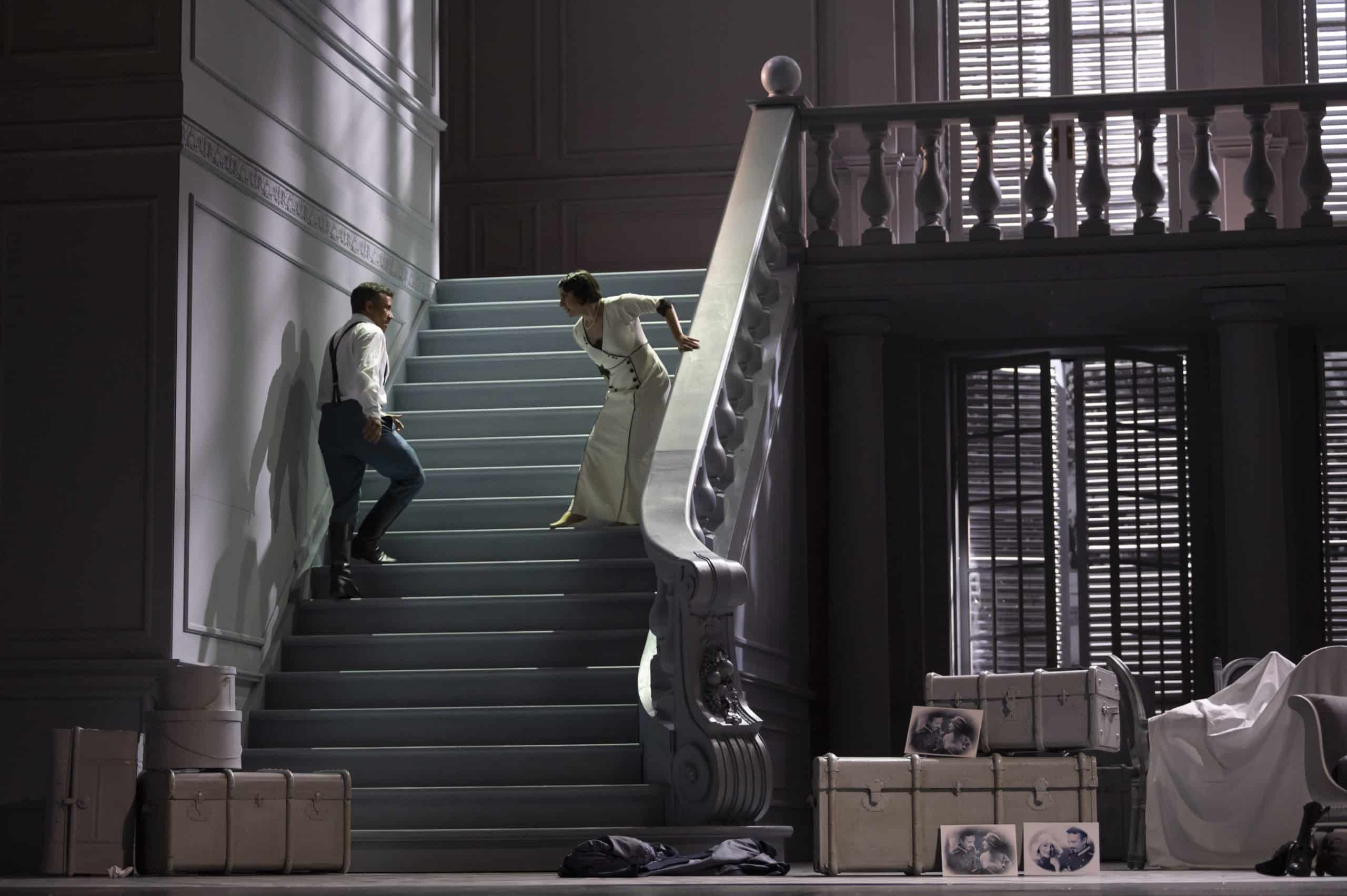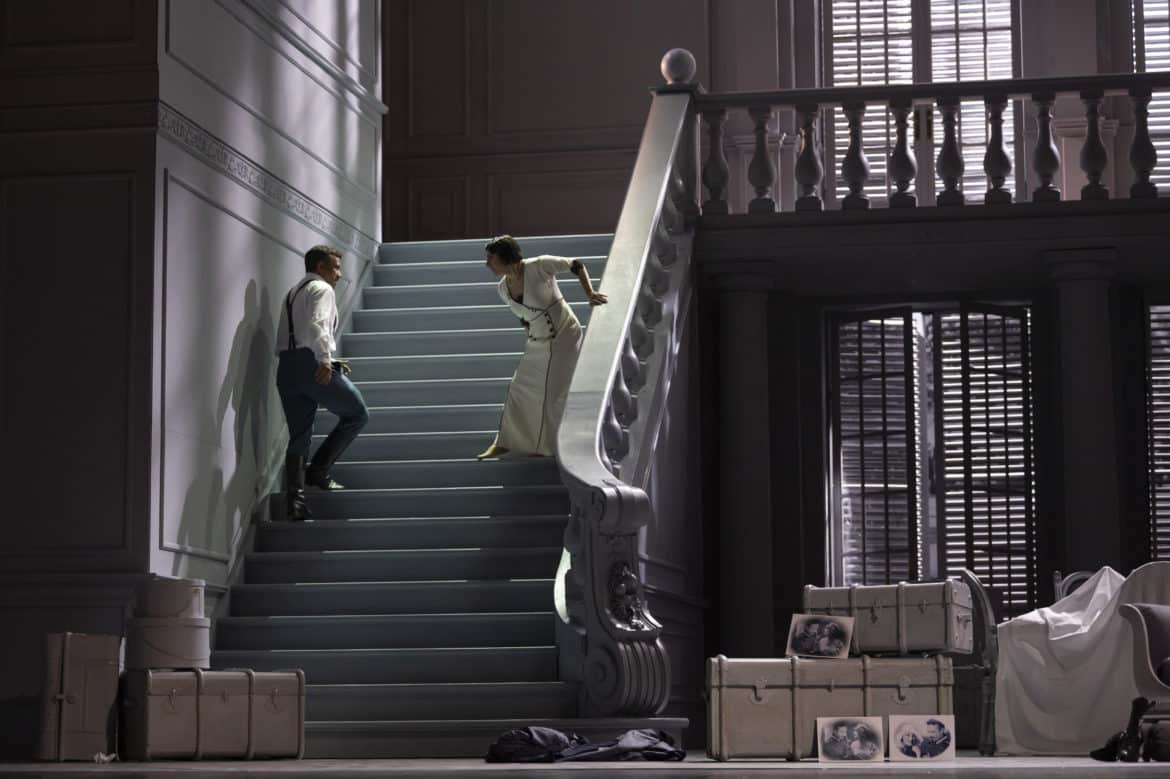 La mise en scène d’Emilio Sagi nous a semblé simplement « fonctionnelle » au premier acte. Elle est, in fine, mieux que cela : préservant quelques beaux moments d’émotion (Desdémone regardant des photographies d’elle-même en compagnie d’Othello alors que le gondolier rappelle qu’ « «Il n’est plus grande douleur que celle de se rappeler, dans le malheur, les moments fugaces de bonheur… »), elle propose certains condensés dramatiques bienvenus, notamment lors du meurtre de Desdémone puis de la scène finale, si difficile à réussir en raison de son étonnante concision.