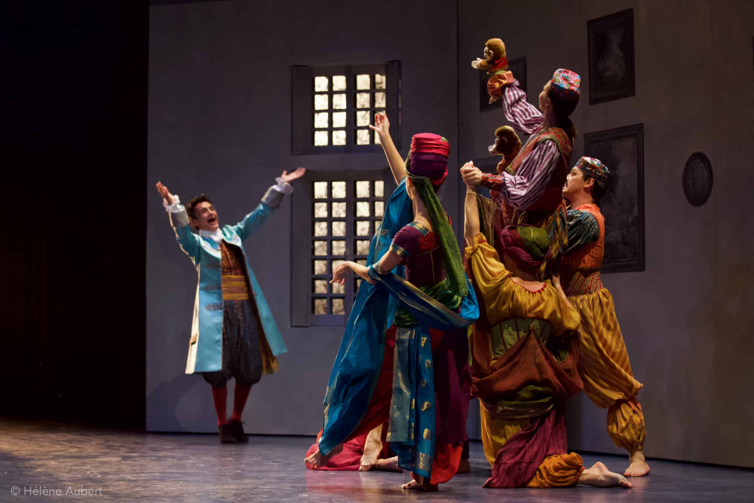 Autant dire tout de suite qu’avec Le Concert spirituel et Hervé Niquet, les intermèdes musicaux de la dernière comédie-ballet de Molière atteignent un degré de qualité superlatif : certes, on retrouve ici les qualités de précision, cette recherche des couleurs ou de contrastes expressifs qui séduisent tant dans cette formation ; mais ce qui frappe avant tout, c’est l’aspect jubilatoire de la musique, constituant un parfait écrin pour les scènes parlées auxquelles elle tend un miroir ironique et tendrement moqueur. Aux musiciens du Concert spirituel se sont joints six chanteurs (Axelle Fanyo, Lucie Edel, Flore Royer, Blaise Rantoanina, Romain Dayez et Yannis François), dont la moitié, en cette soirée du 28 janvier… est malade ! Les artistes ont cependant tenu courageusement à assurer la représentation : en dépit d’une puissance vocale parfois diminuée par rapport à ce qu’ils font habituellement entendre, leur indisposition n’a pas trop durement affecté leurs capacités vocales, et l’on apprécie chez chacun d’entre eux la fraîcheur des timbres, le soin accordé à la diction, et surtout un esprit d’équipe et une jubilation communicative.