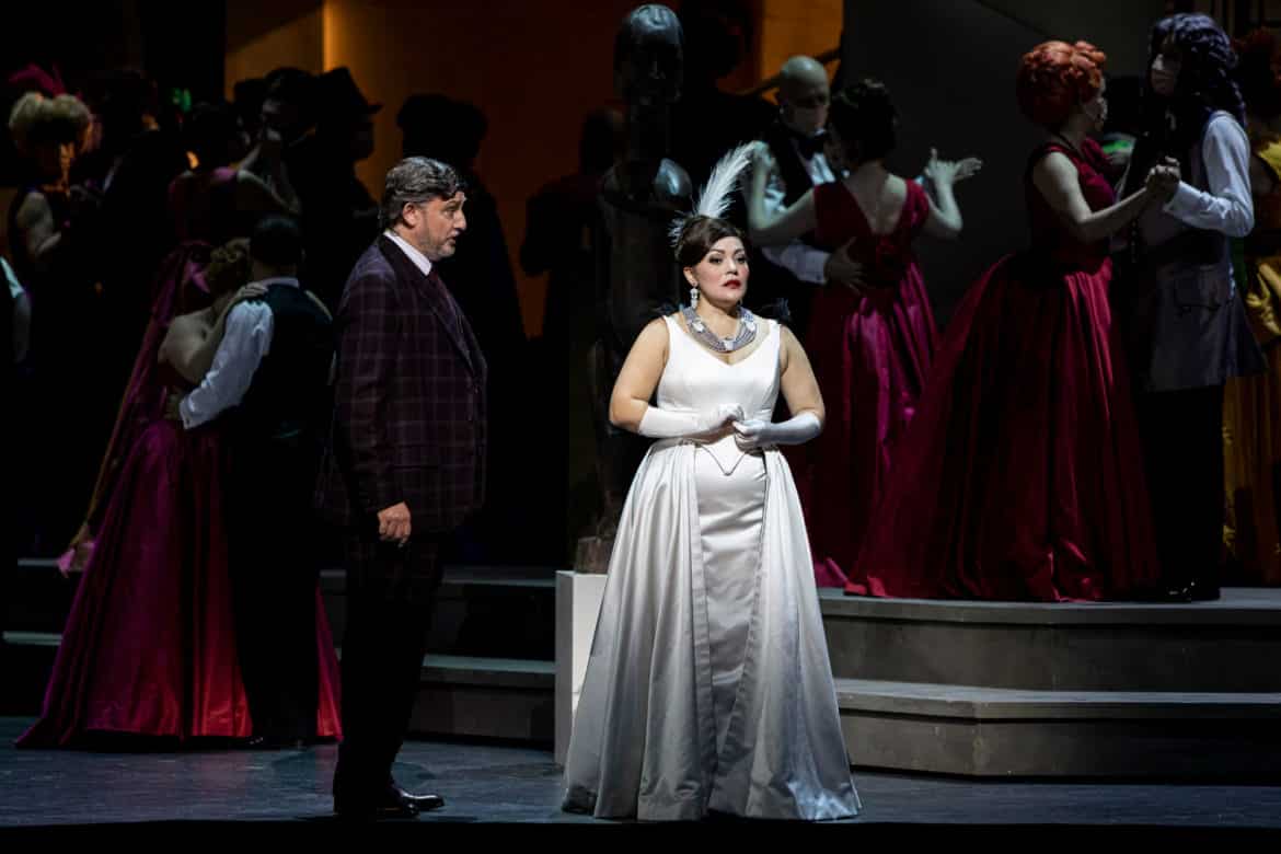 L’essentiel est ailleurs. Il est dans les couleurs. Car qu’est-ce que l’opéra de Massenet ? Sûrement pas du Verdi. Mais un mélange de grand lyrisme, de subtilités harmoniques, de délicates lignes de chant, mêlés à des moments de joie, d’exubérance et de fête – celle du Cours-la-Reine au troisième acte – avec une finesse d’instrumentation qui parfois se cabre sous des choix percussifs, dramatiques, violents même.