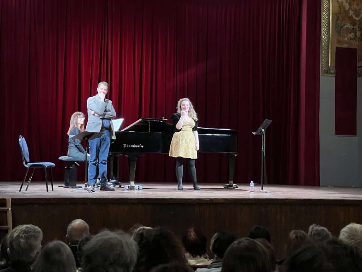 Maniant le français, l’italien, l’allemand et le russe, les deux jeunes chanteurs sont fort convaincants sur l’estrade de concert, notamment par leur écoute chambriste du piano, dont Wenjia Guo (jeune carrière en Chine et en France) assure la totalité des accompagnements. Formée au CNSM de Lyon dans la classe de Mireille Delunsch, la soprano Chloé Jacob fait montre d’une technique assurée et d’une richesse de timbre appréciable. Le timbre mordoré fait éclore le Lied Allerseelen de R. Strauss et l’ampleur des aigus confère une émotion patente à la célèbre Prière à la lune de l’opéra Rusalka : « O lune, arrête-toi un moment, Dis-moi, veux-tu, où est mon amour ! » (1er acte), en dépit d’un écart de justesse en finale. Quoi qu’il en soit, cette prestation atteint le pic d’émotion de la soirée.
