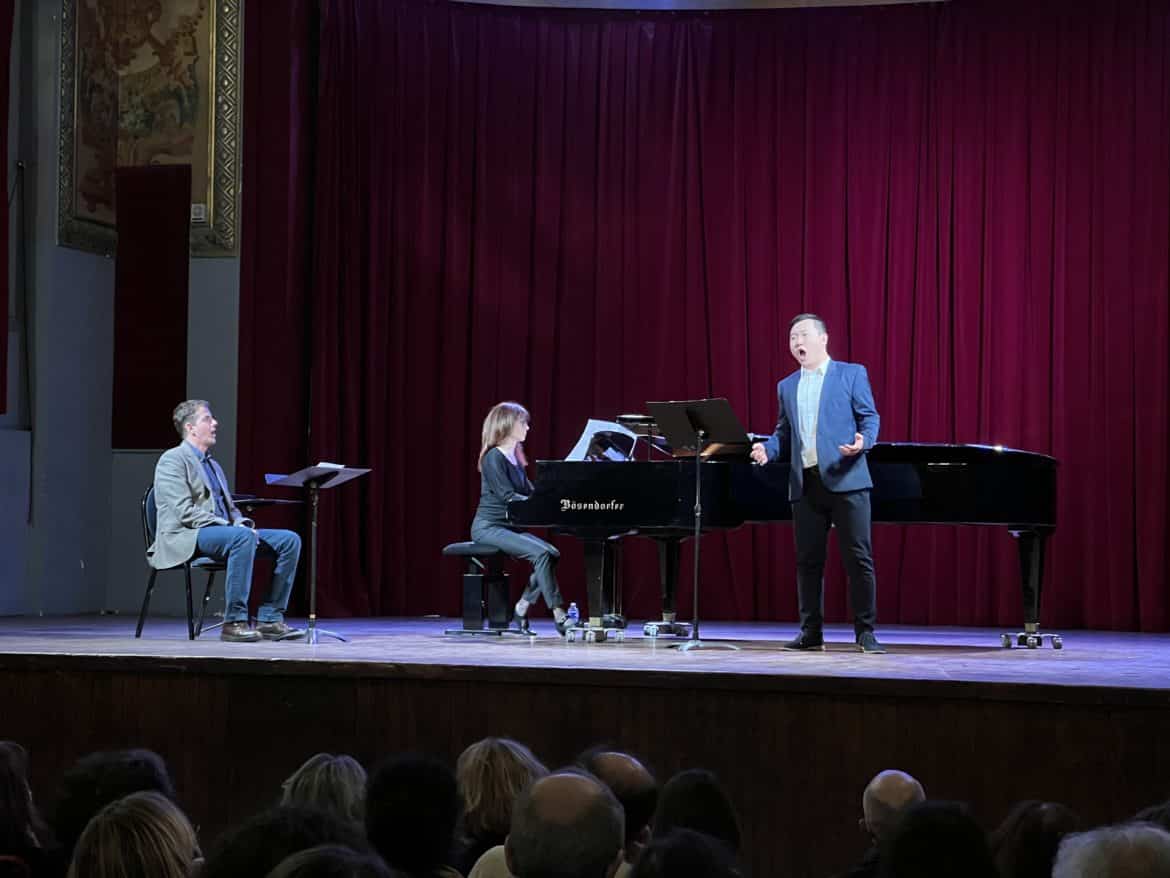 Sélectionnés sur quantité de candidatures, quatre jeunes montent ce soir sur l’estrade : 3 mezzo-soprani françaises et un ténor (chinois ?). Julie Nemer a une belle aisance dans la vocalise et un dynamisme juvénile qu’elle perfectionne auprès du maître dans une aria di furore d’Alcina de G.F. Haendel et le piquant récitatif/air de Rosine du Barbiere di Siviglia de Rossini.