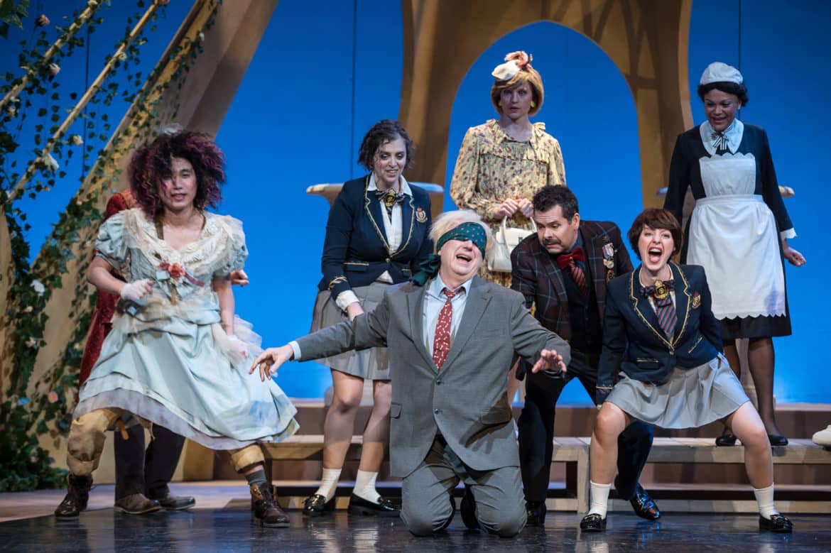 Le dédoublement d’Obéron et Titania en couple professeur-étudiante est servi avec élan par Robert Getchell et Coline Dutilleul, tandis que Rachel Redmond révèle une bonne au soprano léger et fruité. Le quatuor amoureux augural ne manque pas de piquant, avec Linfeng Zhu en Hermia – aussi Mortdefaim – et François Mulard en Héléna – à qui est dévolu de plus un solo de flûte, tandis que les prétendants mâles sont confiés à Victor Duclos, Lysandre qui endosse également la défroque du jardinier et de Derrière, et Vincent Violette, Démétrius et Coing, comédien, maître de cérémonie et de narration. On n’oubliera pas Alice Pech, Irina Golovina, Magali Aguirre Zubiri et Audrey Dandeville, les quatre fées et étudiantes d’Oxford, confiées, comme d’autres rôles, à des membres de l’Ensemble vocal de l’Atelier Lyrique de Tourcoing, ainsi que le maniement des marionnettes de Punch & Judy par Jack Ketch.