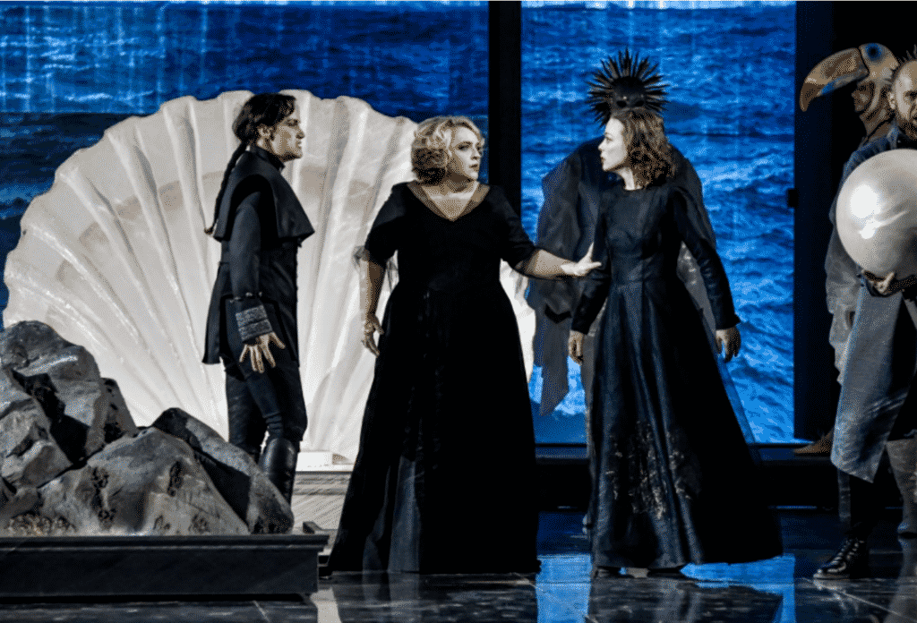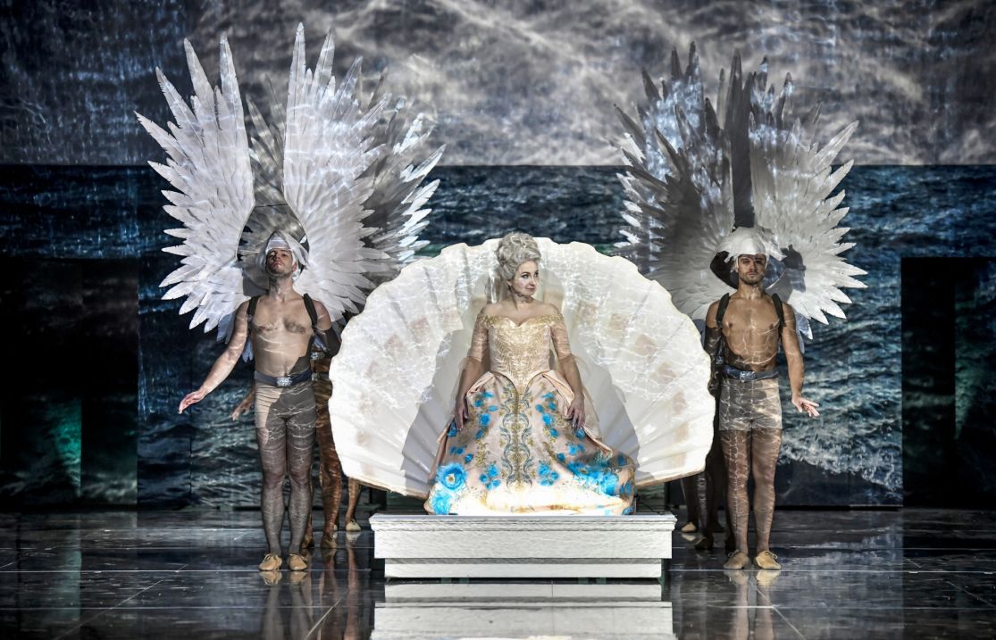 Pourtant, la mise en scène de Jiri Herman et le choix des costumes d’Alexandra Gruskova nous entraînaient dans un monde merveilleux d’un baroque luxuriant, avec ses bêtes sauvages (ces anciennes conquêtes qu’Alcina transforma en lion, éléphant, autruche inénarrable ou pingouin drolatique…), ses éphèbes aux immenses ailes d’anges entourant l’entrée majestueuse de la magicienne comme avec sa vaste conque blanche faisant de Morgana un printemps rose sorti des ombres maléfiques d’Alcina,.