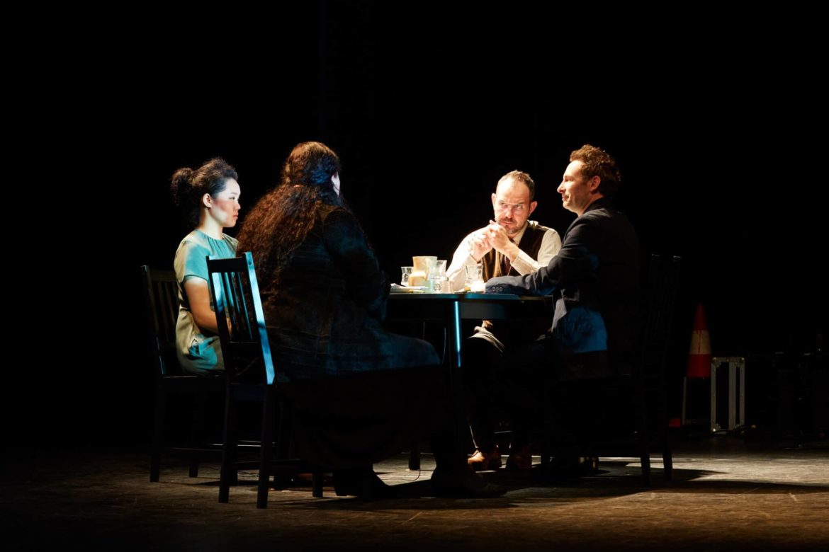 La partie vocale diverge également des codes traditionnels de l’opéra, fût-il contemporain, tant dans la nature que dans les proportions des modes expressifs. C’est la nonchalance déclamatoire des deux comédiens, Grégoire Tachnakian et David Migeot, incarnant Witold et Fuks, les deux garçons, qui occupe le devant de la scène, tandis que les interventions chantés et parfois rocailleuses de la Bolita de Léa Trommenschlager et du Léon de Vincent Vanty-ghem ne viennent que ponctuer occasionnellement la narration, comme en style indirect. Au bout d’une heure trente, on sort à la fois fascinés et circonspect par cette aventure hors des sentiers battus du lyrique, qui mériterait sans doute une deuxième écoute pour, peut-être, davantage fixer son opinion.