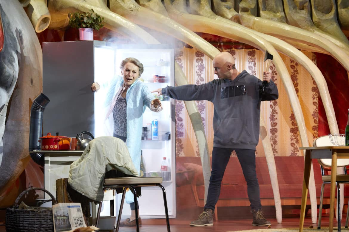 Dans l’opéra contemporain, le problème de la vocalité n’est pas efficacement pris en compte : s’il y a toujours une recherche de nouveaux sons pour les instruments, il n’y en a pas pour les voix, et les compositeurs se réfugient dans une déclamation souvent plus anonyme que la musique qui l’accompagne. Ici, Eötvös fait exception, ne serait-ce que pour les personnages féminins : les vocalises et le registre aigu de la prostituée, le lyrisme d’Alida, les chants des « sirènes » hors scène apportent leur contribution à la redéfinition de la voix dans l’opéra contemporain. Les interventions des hommes sont moins intéressantes sur le plan vocal, même si le ténor néerlandais Linard Vrielink définit le personnage d’Asle avec une ligne de chant assurée, avec sa fureur abstraite, ses » accidents » et sa fin tragique. Plus complexe sur le plan vocal est le rôle d’Alida, interprété par la talentueuse soprano norvégienne Victoria Randem, la première voix que nous entendons à l’ouverture du rideau et la dernière dans la scène de l’épilogue, lorsque, devenue vieille, elle raconte à l’esprit de son compagnon mort l’histoire de son fils qui, lui aussi violoniste, a quitté le pays – avant d’entrer dans la mer et de retrouver ainsi son bien-aimé dans la mort. Sarah Defrise incarne la femme blonde qui s’acoquine avec les marins. Sa performance vocale est tout aussi désinhibée, avec une colorature efficacement réalisée et une grande agilité. Dans un camée glorieux, la légendaire Hanna Schwarz apporte un surcroît dramatique au rôle de la Vieille Dame, et l’Homme en noir est incarné avec autorité par Tómas Tómasson. L’obsession de l’auteur pour le nombre douze et ses diviseurs se reflète également dans les douze voix qui, comme dans le chœur grec, commentent l’histoire et donnent des conseils : six sont les marins (l’univers masculin d’Asle), six les voix féminines hors scène (les pensées d’Alida). On compte également trois cors et trois clarinettes dans l’orchestre.