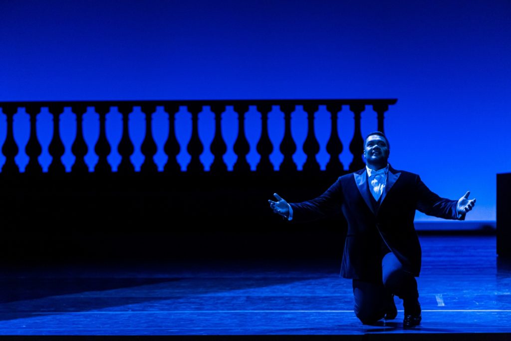 Mais toute l’attention des spectateurs était bien sûr avant tout focalisée sur le couple éponyme. L’apparition de Nadine Sierra est un ravissement. Élégantissime, fraîche et naturelle dans son jeu comme dans son chant, l’identification avec le personnage est constamment possible. La voix possède de vrais graves et un beau médium (le monologue « La haine est le berceau de cet amour fatal », pierre d’achoppement pour de nombreux sopranos trop légers distribués en Juliette, est remarquablement maîtrisé), mais aussi des aigus frais et faciles. Le chant est nuancé sans afféterie, et le dramatisme de la scène du poison puissant. À un tel degré de qualité, ergoter sur un français qui, ici ou là, pourrait être mieux prononcé (il l’est d’ailleurs globalement de façon tout à fait satisfaisante) relèverait de la goujaterie. Quant au Roméo de Pene Pati, c’est un enchantement de tous les instants. De l’attaque tendrissime du « Ô nuit, sous tes ailes obscures, abrite-moi » (acte II), chanté en voix mixte, jusqu’à l’aigu forte, absolument stupéfiant de facilité, qui clôt le troisième acte (« Je mourrai mais je veux la revoir ! »), le panel de nuances semble infini. Pene Pati chante comme d’autres parlent, avec un naturel et une facilité confondants. Le respect du style (à un ou deux points d’orgue près) et l’émotion sont constants, et la pureté du français ferait pâlir plus d’un chanteur francophone. Une interprétation bouleversante, qui fait de Pene Pati, sans aucune doute possible, l’un des meilleurs titulaires du rôle aujourd’hui – et un ténor à suivre absolument.