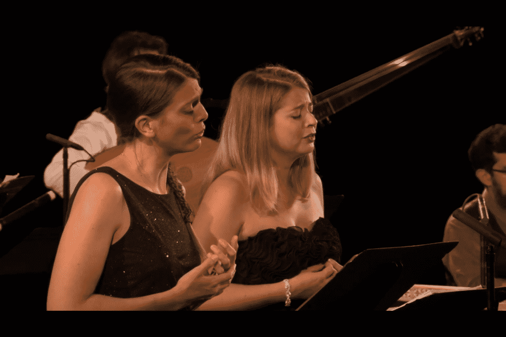 Si les instrumentistes de l’ensemble Il Caravaggio font valoir ici ou là de remarquables talents individuels (le côté âpre et grinçant des cordes traduisant le « bruit sourd et grinçant » qu’entend Procris dans la « tragédie mise en musique » d’ Élisabeth Jacquet de La Guerre, le délicat traverso qui double la voix d’Anna Reinhold dans l’aria « Dove vai, crudo spietato ? » extraite de La mort de Lucrèce de Michel Pignolet de Montéclair), c’est pourtant leur capacité à former un ensemble délicatement équilibré que l’on apprécie avant tout, ainsi que leur capacité à véritablement dialoguer avec les chanteurs, bien plus qu’à simplement les accompagner. Le mérite en revient également à la cheffe Camille Delaforge, qui, de son clavecin, veille constamment à équilibrer les interventions des uns et des autres et à doser les effets de façon à préserver la teneur parfois poétique, parfois comique, parfois dramatique des œuvres interprétées.