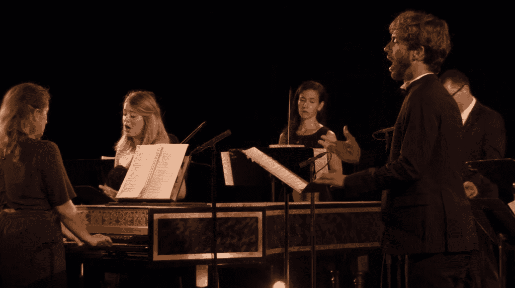 L’ensemble Il Caravaggio, dont la création est toute récente, vient de proposer un concert très particulier dans le cadre du festival de Sablé-sur-Sarthe, qui, coronavirus oblige, a été annulé cette année – sauf pour deux concerts donnés sans public mais filmés : le premier permettait d’entendre le Te Deum de Charpentier interprété par le Concert Spirituel sous la direction d’Hervé Niquet (le concert est toujours visible ici ; le second, donné samedi 29 août, était précisément celui du Caravaggio, au cours duquel a été interprété un florilège particulièrement séduisant d’airs sérieux et à boire, de cantates, de pièces instrumentales ou d’extraits d’opéras de compositeurs et compositrices du Grand Siècle : Mademoiselle B…, Nicolas Racot de Grandval, André Campra , François Couperin, Michel Pignolet de Montéclair et Élisabeth Jacquet de La Guerre. C’est ainsi l’esprit des salons français de l’époque que Camille Delaforge, ses musiciens et les trois chanteurs réunis pour l’occasion (Marie Perbost, Anna Reinhold et Thibault de Damas) ont fait revivre l’espace d’une soirée, avec un enthousiasme de tous les instants.