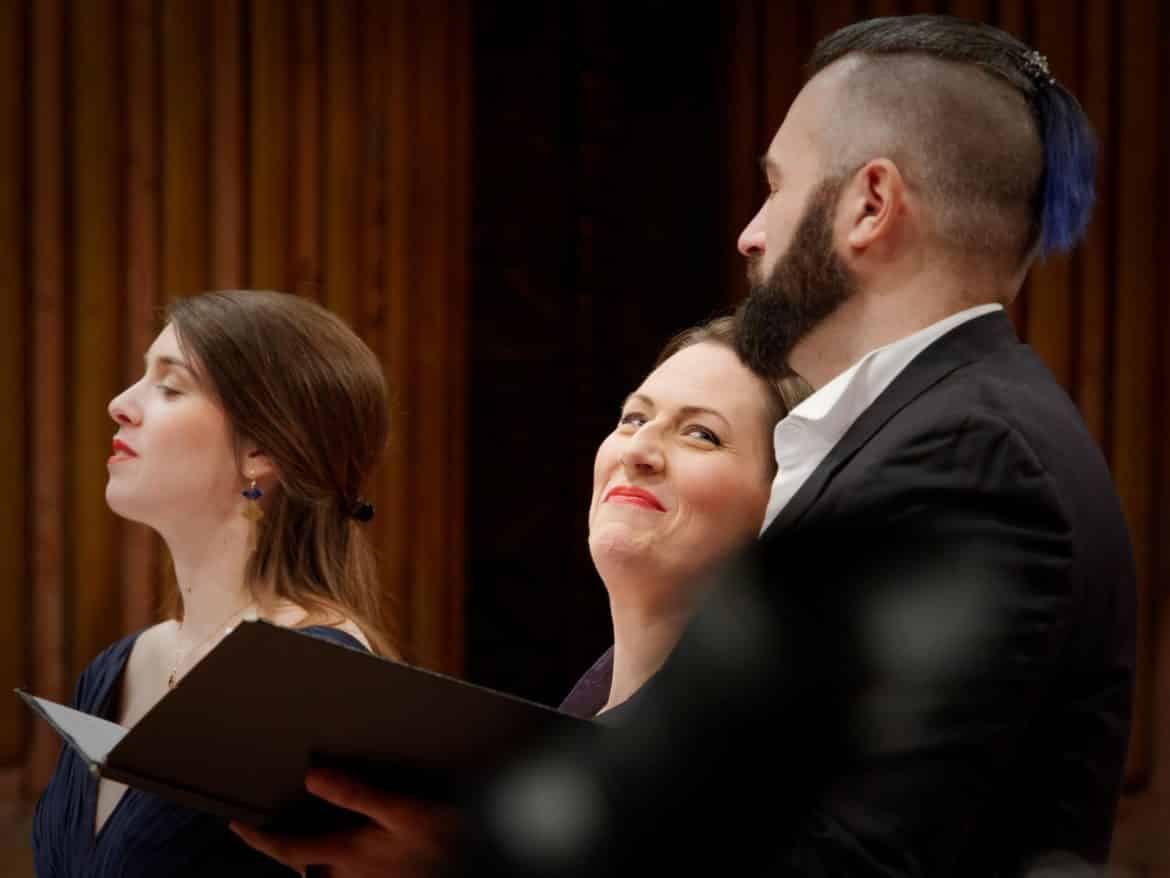 Vocalement, c’est la fête ! Un trio de grande qualité a été réuni, auquel s’est joint le talentueux ténor anglais Nicholas Scott pour la page finale : « Il destino, la sorte e il fato ». Gwendoline Blondeel, récemment très remarquée dans Il Parlazzon incantato à Dijon et surtout L’Aurore et Triton à l’Opéra Comique – et dont la carrière prend actuellement un très bel essor – fait entendre, dans l’Âge d’Or, un timbre fort agréable, à la fois léger et fruité, particulièrement apprécié dans son premier air « Se qui pace », où la voix se déroule en douces volutes évoquant le chant du rossignol. Peut-être aurait-il fallu, dans certaines pages à la tonalité majestueuse et solennelle (par exemple dans son dernier air « Non fu mai piu vista »), un peu plus d’autorité dans l’accent et de mordant dans la prononciation (notamment en accentuant certaines consonnes). Mais le timbre se marie très bien à celui de l’alto en termes de couleurs et de puissance, ce qui nous vaut de ravissants duos.