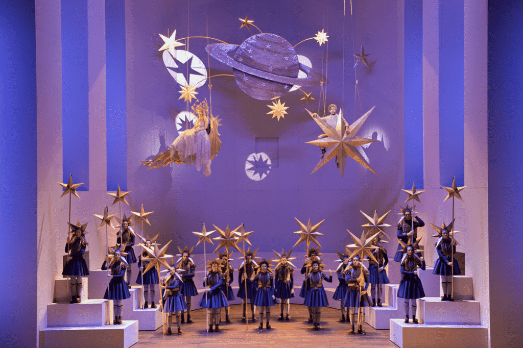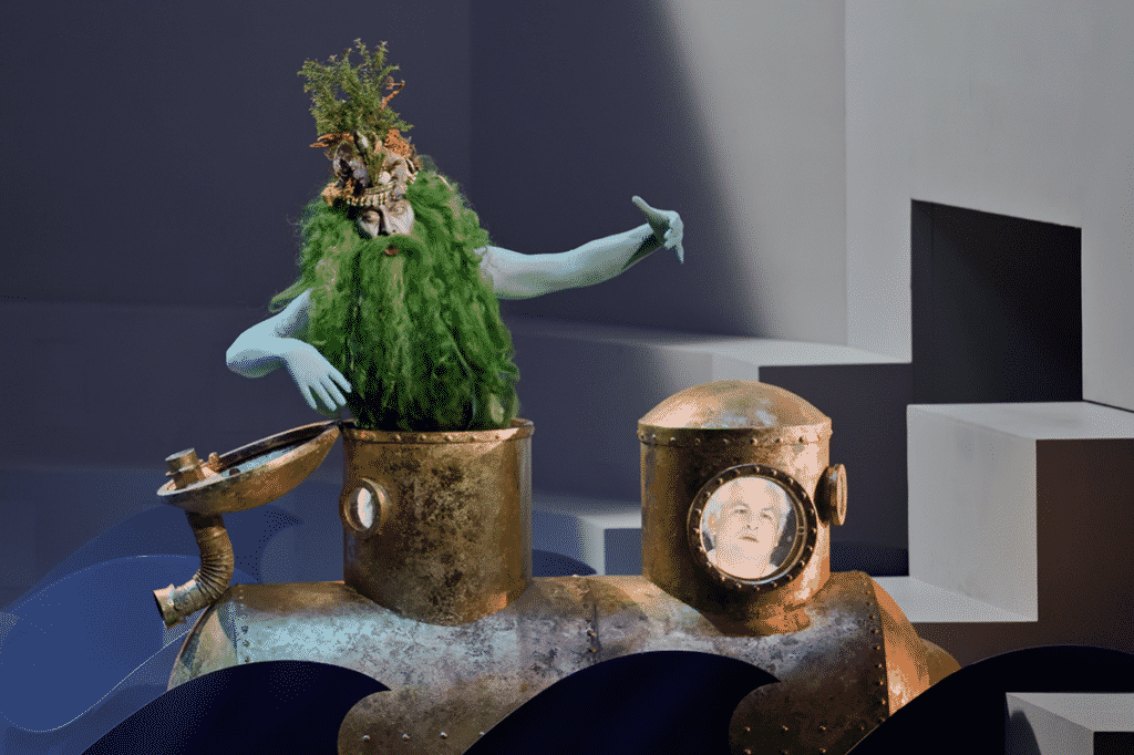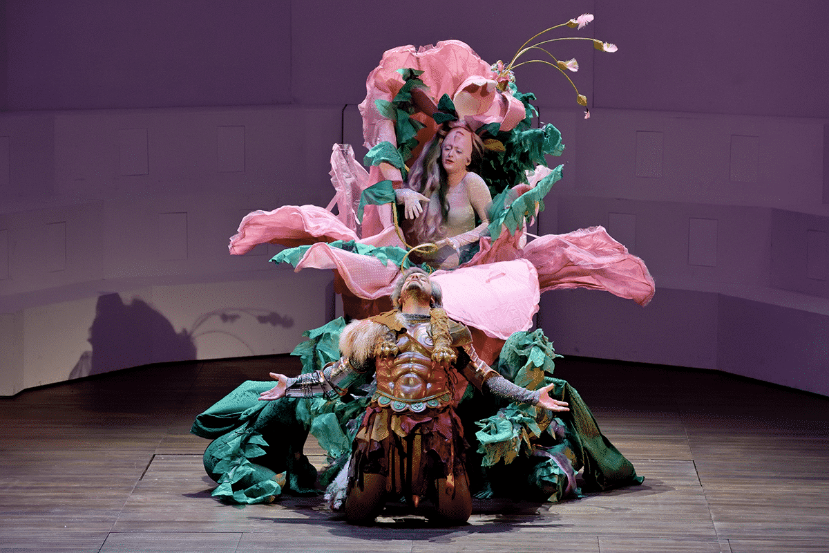 Quelle idée saugrenue que d’avoir choisi, pour glorifier le jeune Louis XIV s’apprêtant à épouser l’Infante d’Espagne, le personnage d’Hercule amoureux, qui traite si mal sa bien-aimée Iole (dont il a par ailleurs tué le père Eurytus), sans parler de son épouse légitime Déjanire ou de son fils Hyllus, qu’il emprisonne et dont il vole la fiancée ! Certes, après avoir été puni de ses frasques par le feu (la tunique du centaure Nessus le consume), il est élevé au rang de dieu et est uni à la Beauté. Il n’empêche, plus encore qu’un hommage appuyé au roi français, le livret de Francesco Buti est surtout le prétexte à un spectacle grandiose, susceptible de divertir et d’éblouir les spectateurs par son faste et les prouesses techniques qu’autorisait la machinerie de l’époque – celle du Théâtre des Tuileries, d’ailleurs également appelé en son temps la « Salle des Machines ». Les metteurs en scène Valérie Lesort et Christian Hecq, avec l’aide de Laurent Peduzzi (décors), Vanessa Sannina (costumes et machines) et Christian Pinaud (lumières), ont ainsi joué la carte de l’émerveillement, respectant en cela la visée d’origine de l’opéra de Cavalli : le spectacle est un éblouissement permanent, avec hommes ou objets volants, monstres grotesques ou terrifiants, apparitions et disparitions inopinées, mer déchaînée, prison suspendue dans les airs,… Les costumes, décors et accessoires sont d’une beauté et d’une originalité stupéfiantes : on retiendra notamment le magnifique costume de Junon juchée sur son paon, l’arrivée de Vénus dans un oiseau-avion, ou encore le trône magique de Vénus, qui s’anime de façon aussi inattendue qu’inquiétante !