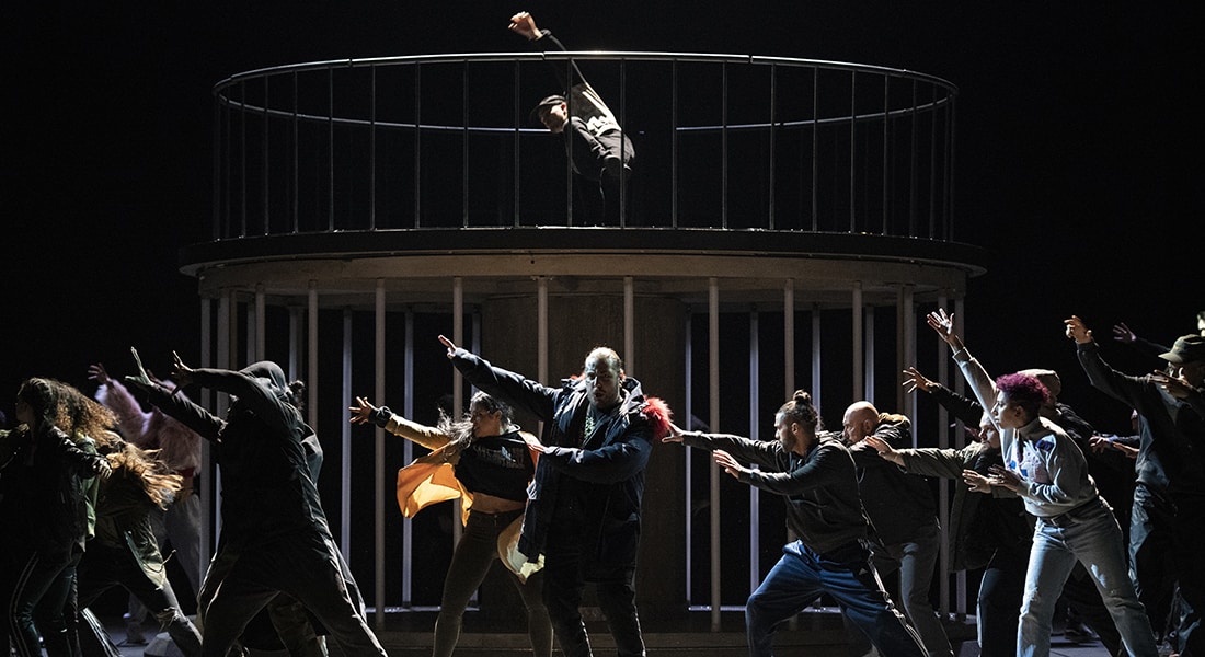 Il fut beaucoup reproché à Alarcon : d’avoir monté le diapason, d’avoir même « inventé » un air de Rameau, que sais-je… J’objecterais surtout une chose : pourquoi avoir rendue inaudible la superbe chaconne finale qui ne sert que d’accompagnement musical aux saluts de toute la troupe et disparait sous les vivats d’un public électrisé ? C’était un vrai gâchis musical. Il eût suffi, au plus grand bonheur des spectateurs, de reprendre la danse effrénée des sauvages qui fut le moment le plus attendu. En soi, ce n’est pas la transposition de l’action, avec danses krump d’aujourd’hui, qui pose le plus question dans la production de Bastille. L’actualisation nous fait ainsi entendre la tempête de l’entrée du « Turc Généreux » comme le reflet d’une terrifiante actualité (« Sous les ondes périrons-nous ? » chantent des naufragés de la Méditerranée). Souvenons- nous du scandale créé par Alfredo Arias à Aix en Provence, en 1990 où les junkies étaient sur scène et la lambada-rock était dansée par Christie lui- même au moment des saluts. Trente ans plus tard, ce qui pose problème, c’est d’abord ce noir permanent du décor pour un opéra solaire, lumineux,joyeux. C’est aussi l’ennui distillé pendant la plupart des danses orchestrales car sur le plateau, trop souvent, il ne passe que quelques manutentionnaires poussant des éléments de décors improbables. Mais le déchainement – ou la poésie – du krump est loin d’irriguer tout le spectacle, ainsi ralenti, inégal malgré quelques fulgurances. Quant au décor, il est envahi par un immense bras animé descendu des cintres, dont la récurrence est plus que pesante, en total contraste avec la légèreté de l’oeuvre.