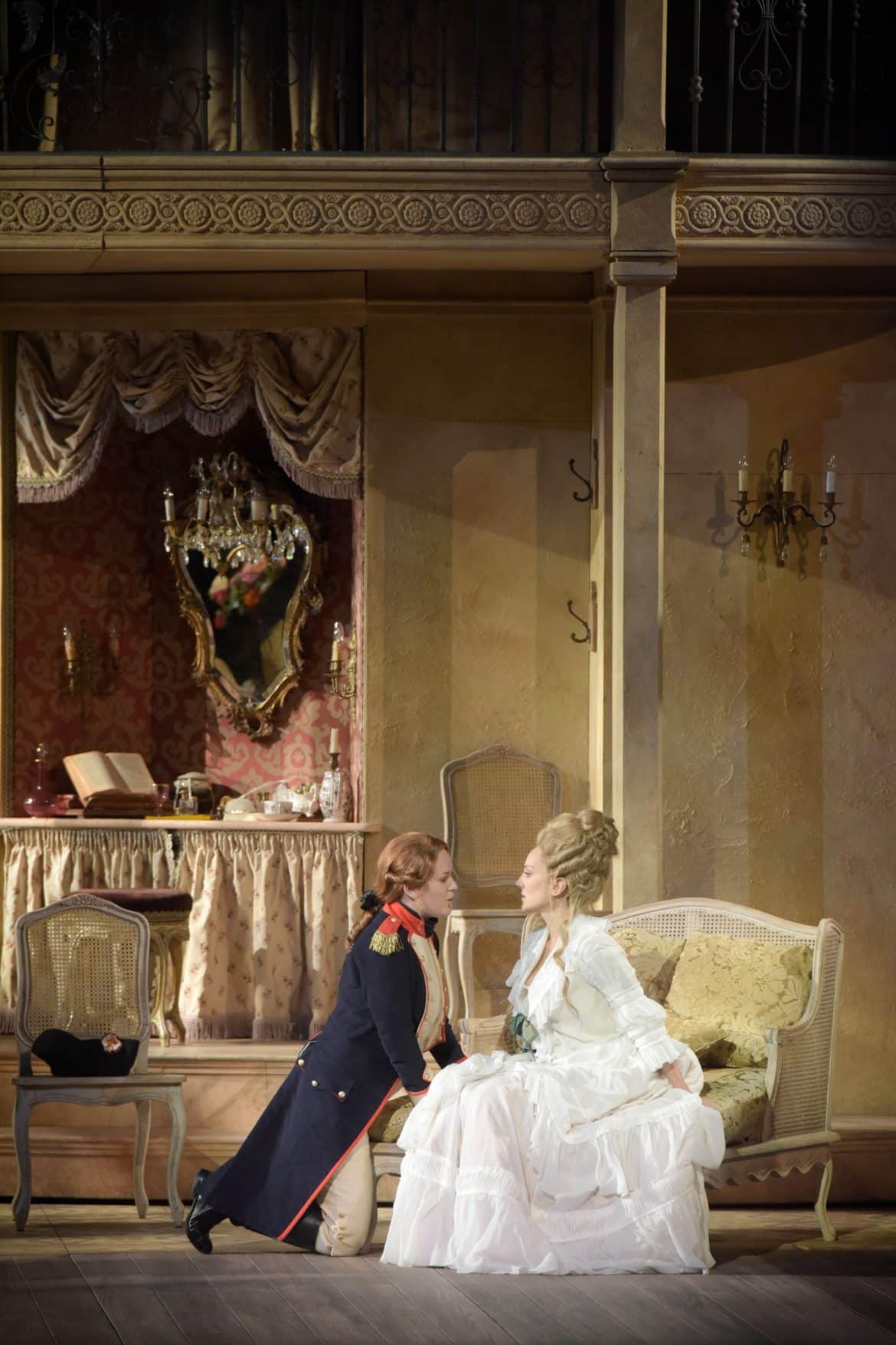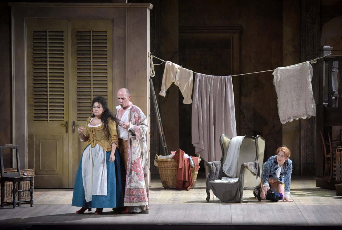 À grand Comte, grande Comtesse. Même si sa maîtrise vocale ne semble pas aussi absolue que celle de son baryton de mari, Vannina Santoni met au service de Rosina Almaviva son beau soprano lyrique et lumineux. Son sens de la ligne et sa musicalité font merveille et on admire ces prises de risques (attendues et réussies) sur les nuances et la longueur de souffle comme dans la reprise du « Dove sono i bei momenti » à l’acte III. Mais ce qui rend cette Comtesse unique, c’est une sensibilité à fleur de peau qu’on devine nourrie par le travail avec James Gray. Le début de ce même « Dove sono« est à ce titre habité d’une telle tristesse qu’on croirait entendre des larmes couler sur la musique, voilà bien le signe d’une grande artiste. Cette Comtesse tiraillée entre passé et présent, liberté et soumission à un mari violent, désir et impuissance, touche au cœur et c’est un bonheur…