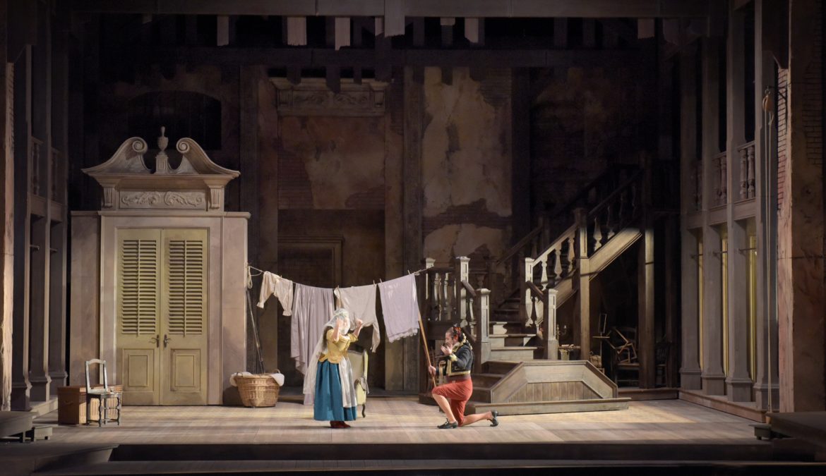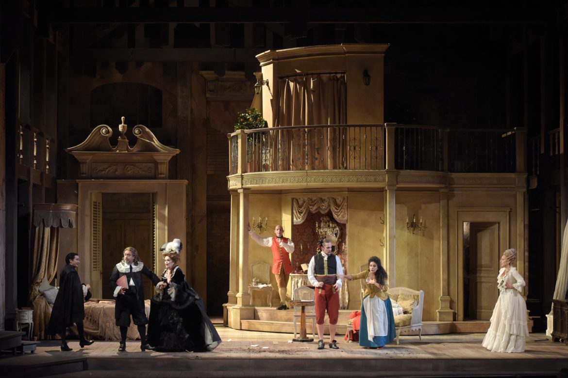 Cette nouvelle production parisienne pourrait donc sembler un brin poussiéreuse mais peut-être est-ce tout simplement le but recherché par le réalisateur américain. Ne sommes-nous pas en train de regarder une représentation des Noces de Figaro au temps de Mozart ? Souffleurs de chandelles en costumes d’époque, continuiste pérruqué, lever de rideau par Figaro lui-même avant son entrée en scène… Théâtre dans le théâtre ? Pourquoi pas. D’autant plus que le décor est à l’avenant. Chambres, escaliers, fauteuil, portes, jardin, tout est là. Chaque situation aura son accessoire idoine. Théâtre dans la salle également avec ces passerelles qui surplombent la fosse d’orchestre. Tout fonctionne avec un petit air de déjà vu mais reconnaissons au moins à James Gray le mérite d’avoir créé un spectacle d’une beauté visuelle certaine, aux rouages bien huilés, et au service de la musique.