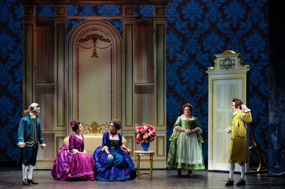 Corigliano mêle alors quelques notes de l’ouverture des Noces de Figaro de Mozart, du fameux air de Figaro du Barbier de Séville de Rossini, des tendances à la comédie musicale et des sonorités à la Korngold, le tout en exaltant les Constellations et répétant « ils aimeraient me tuer ». Mais cela ne divertit pas Marie-Antoinette. Alors, Beaumarchais lui demande son collier (celui de l’Affaire sans doute…), lui promettant « Je vais vous montrer comment aurait dû être l’Histoire »… Le collier va alimenter l’intrigue de l’opéra dans l’opéra, alors que dehors, « Paris est devenu fou » et que l’un des personnages, Bégearss (avec deux s), chante un air sinistre à la gloire des vers qui rongent les cadavres : le ver, c’est lui… Avec jeu de scène et musique surlignés, il est le fourbe introduit auprès d’Almaviva pour mieux le mener à l’échafaud si le Comte ne lui accorde pas la main de sa fille. Tout est plus qu’improbable dans cette intrigue et le second acte est encore pire que le premier. N’est pas Hofmannstahl qui veut : lui avait tissé un livret sur mesure, en insérant le théâtre dans le théâtre pour Richard Strauss avec Ariane à Naxos.