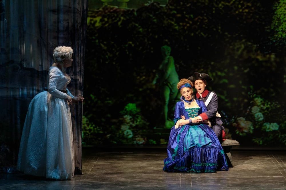 Pour faire oublier la Révolution et sourire, Beaumarchais, présent dans ce petit cénacle de zombies, se propose de divertir la veuve Capet dont il est amoureux. Le voici qui s’invente compositeur d’opéra (!) en adaptant librement la dernière partie de sa trilogie des aventures de Figaro, à savoir La mère coupable. Beaumarchais convoque donc Rosine et Almaviva, Suzanne et son fidèle mari, qui chante un premier air.