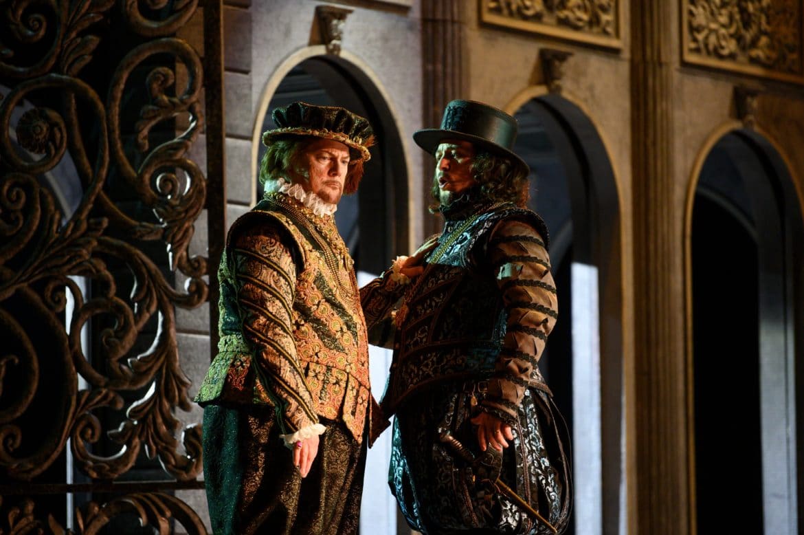 Le français d’Ildebrando D’Arcangelo est toujours un peu cotonneux (sauf dans son air du IV, qui semble avoir fait l’objet d’un travail particulier), mais stylistiquement, le chanteur est plus à sa place que dans les Méphisto de Faust (sur cette même scène l’an dernier) ou de La Damnation (il y a quelques semaines à la Philharmonie, même s’il était, il est vrai, indisposé) ; son Philippe II cependant gagnerait à faire preuve de plus d’introspection et est surtout convaincant dans les moments où l’autorité, voire la brutalité du Roi se manifestent.