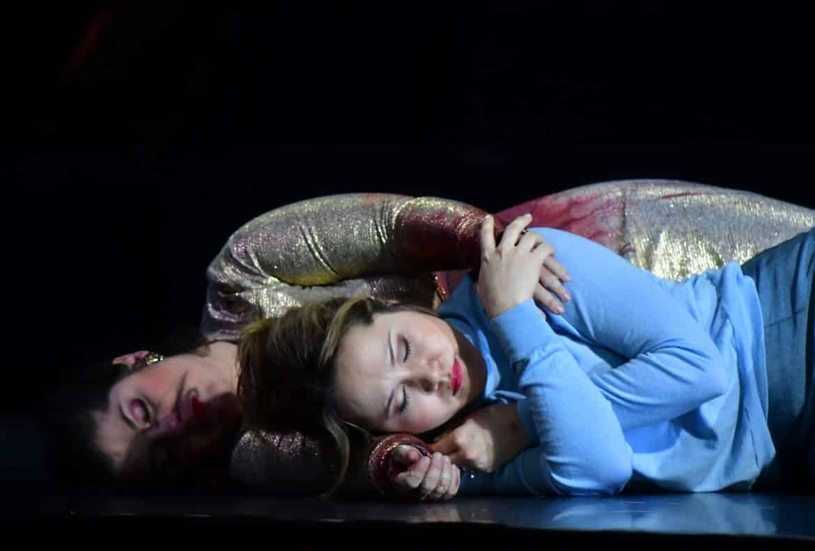 On retrouve avec grand plaisir à Montpellier Thibault Noally qui dirige, de son violon,  l’Ensemble les Accents : après un début peut-être un peu timide, on retrouve très vite la lecture pleine de poésie, de vivacité et de contrastes (celui entre la plainte de la Beauté « Io sperai trovar », dont la mélancolie est soulignée par le hautbois de Rodrigo  Guttierrez et la violence du « Tu giurasti di mai non lasciarmi » qui lui succède est saisissant !) qui nous avait déjà pleinement séduit à Tours lors des derniers Concerts d’Automne. La distribution, en revanche, est totalement différente. Le jeune ténor James Way incarne le Temps. Son timbre a tendance à se durcir et le vibrato à s’accentuer dans le forte, mais ce défaut s’atténue sensiblement dans la seconde partie, au cours de laquelle il délivre une belle interprétation du difficile « E ben folle », aux vocalises très sûres. Les voix des deux mezzos Sonja Runje (la Désillusion) et Carol Garcia (Le Plaisir) sont de couleurs très différentes, et c’est tant mieux puisque ces personnages allégoriques diffèrent totalement, aux plans dramatique et musical. Le timbre de la première, très dense et velouté, permet à la chanteuse de délivrer une interprétation pleine de sérénité, certaines pages (le « Più non cura », notamment) prenant parfois presque l’apparence d’une berceuse empreinte de douceur et de réconfort. A contrario, Carol Garcia propose une vision éminemment dramatique du Plaisir, en conformité avec la vison proposée par le metteur en scène. Un panel très large de couleurs et une technique aguerrie lui permettent d’évoquer avec la même efficacité la volupté, l’arrogance, mais aussi la douleur ou la résignation tragique, son « Lascia la spina » évoquant finalement plus la supplique désespérée d’un guerrier vaincu rendant les armes  qu’une invitation aux plaisirs… Dilyara Idrisova, quant à elle, allie crédibilité scénique, charme vocal et technique assurée (elle s’autorise quelques belles extrapolations aiguës dans les da capo, sans dénaturer pour autant l’esprit de la musique).