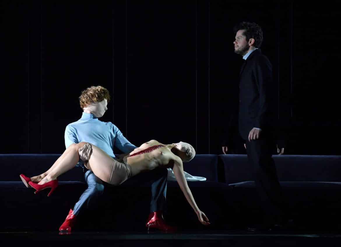 On pourrait bien sûr ergoter longtemps sur la pertinence qu’il y a à mettre en scène un oratorio, le décalage entre l’esthétique baroque et l’austérité contemporaine des décors et costumes, ou encore le hiatus entre la portée allégorique du livret et le drame humain que la mise en scène nous donne à voir. Il n’empêche. La lecture du Trionfo del Tempo e del Disinganno proposée par Ted Huffman est à la fois belle, émouvante, lisible, intelligente. Elle s’articule autour d’un geste fort ; la mise à mort du Plaisir par la Beauté à la fin de la première partie de l’oratorio (la Beauté – une femme à l’élégance un peu stricte et triste dans la vision du metteur en scène britannique – blesse mortellement d’un coup de revolver le Plaisir – une autre femme mais plus épanouie, aux gestes plus sensuels, à la robe plus éclatante que le petit tailleur porté par sa rivale). De part et d’autre de ce geste nous est montrée l’hésitation de la protagoniste (la Beauté) entre les plaisirs vains et faciles et l’acceptation du temps qui passe, évoquée dans un tableau final extrêmement touchant dans sa simplicité : la femme retrouve son mari (le Temps) et ses deux enfants endormis, renouant ainsi avec un quotidien peut-être un peu tristounet, qu’elle avait envisager de fuir, mais dont le bonheur qu’il propose est finalement plus sûr et plus solide que celui des plaisirs vains et fugitifs, lesquels, quoi qu’il en soit, lui seront sans doute bientôt refusés, le temps faisant son œuvre…