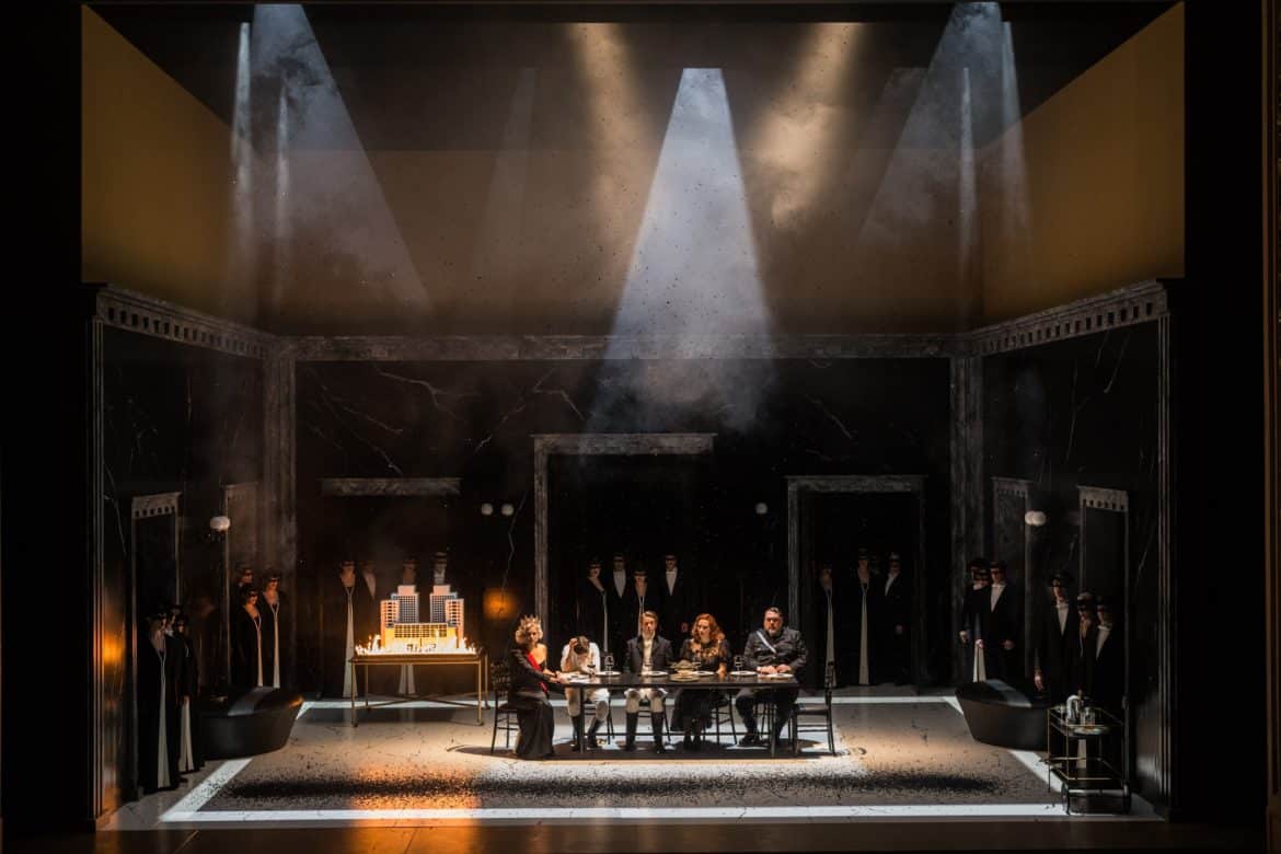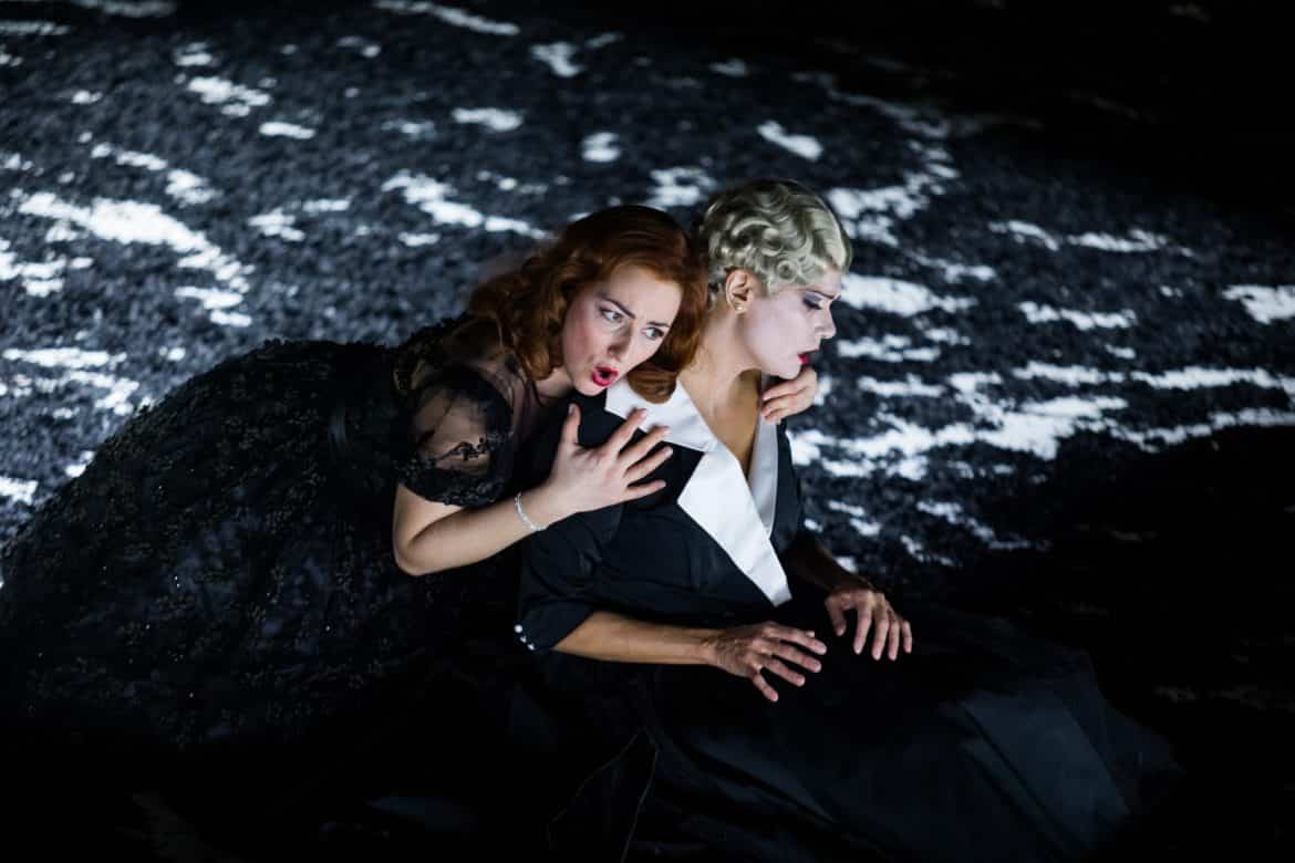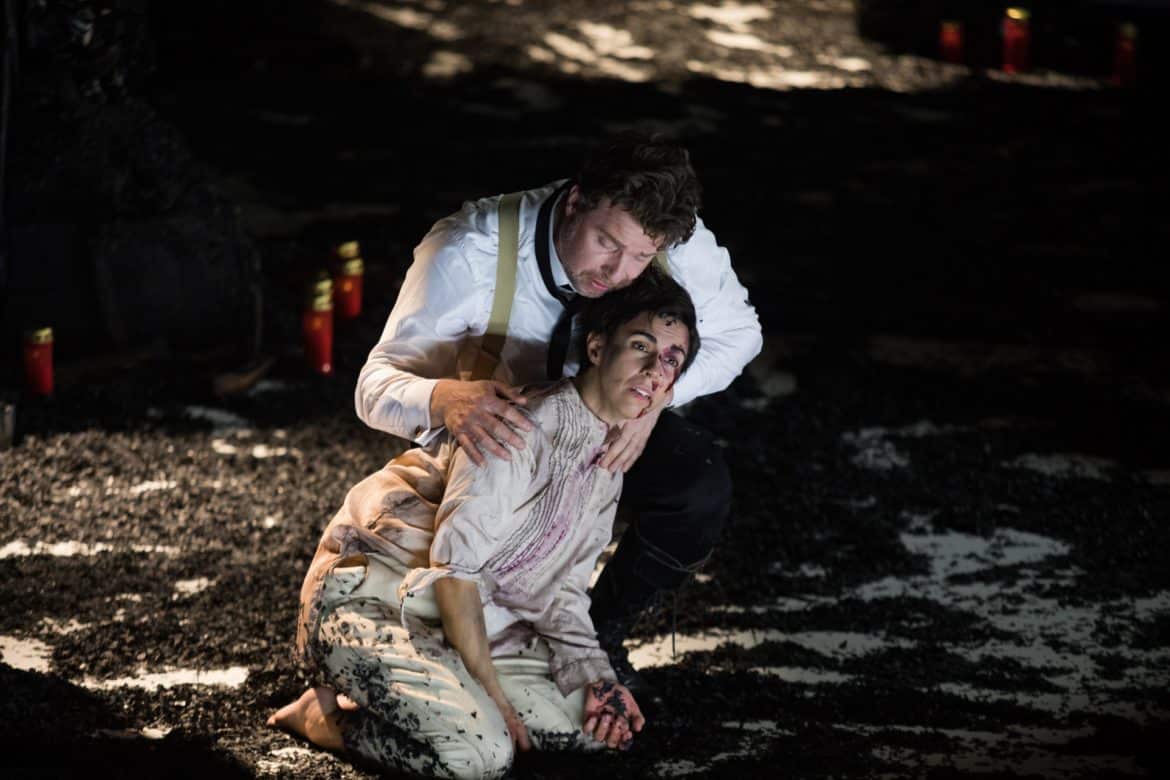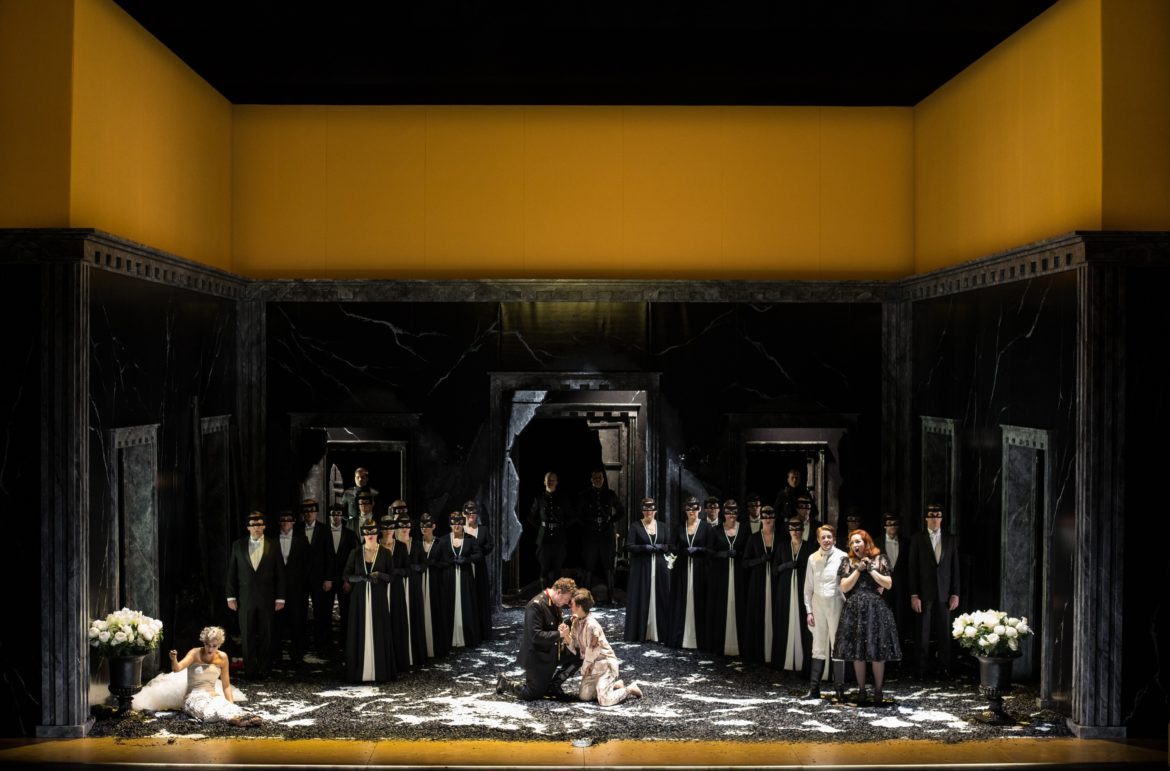 Le spectacle s’articule autour d’une idée à ce point limpide qu’on s’étonne qu’elle n’ait pas été plus souvent mise en œuvre par les metteurs en scène et scénographes : l’incendie du Capitole permet d’établir, dans la tragédie, un avant et un après, et constitue ainsi un pivot symbolisé visuellement par la destruction presque complète du décor du premier acte – que le spectateurs découvrent brisé, calciné après l’entracte. La vision de ce palais ravagé par les flammes (le sol est entièrement recouvert de cendres noires) et de cadavres enveloppés dans des linceuls, au lever du rideau, suscite dans le public une émotion palpable… À partir de là, la machination ourdie par Vitellia au premier acte (la princesse y apparaît hyper sexuée : on comprend très vite que cette apparence relève, de sa part, d’une stratégie pour séduire Sesto, le faire tomber dans ses rets et le manipuler) s’emballe et plus rien ne semble devoir l’enrayer, jusqu’au désastre final : Vitellia, dévastée par le remords, perd la raison (son « Non più di fior », véritable scène de folie chantée d’une voix blanchie par une femme hagarde aux gestes désordonnés, est peut-être, dramatiquement, l’un des moments les plus forts auxquels il nous a été donné d’assister cette saison…) ; Sesto, blessé (sans doute suite à l’interrogatoire brutal qu’on lui a fait subir pour lui faire avouer son crime), est entre la vie et la mort ; et Titus, qui pensait, en pardonnant aux conspirateurs, s’être construit une statue pour la postérité, est froidement abattu par Publio… C’est intelligent, fort, puissamment dramatique, et cela met définitivement à mal l’image d’un opera seria bavard, long et un peu terne, encore trop souvent attachée à l’ ultime chef-d’oeuvre de Mozart.