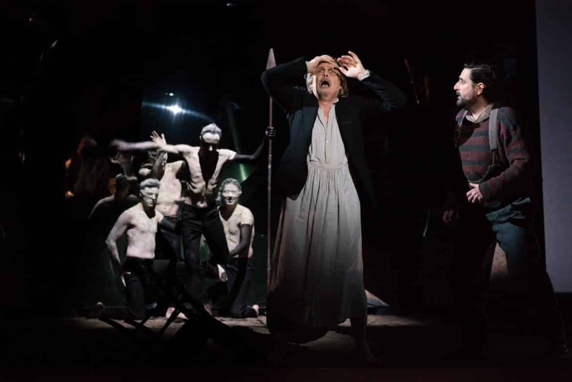 La direction d’acteurs est extrêmement soignée et tous les interprètes sont de remarquables comédiens, même si vocalement les choses sont parfois un peu inégales… Julie Robard-Gendre est une Dulcinée séduisante en diable, et vraiment touchante lorsqu’elle éconduit le chevalier avec bienveillance à la fin du quatrième acte. Mais la voix est-elle bien celle de la bien-aimée du chevalier ? Le timbre, de couleur sombre, les graves opulents semblent destiner la chanteuse à des rôles plus sombres que celui-ci, lequel requiert une ligne de chant moins angulaire, plus souple, et une morbidezza qui lui est assez étrangère. L’intelligibilité du texte est par ailleurs souvent prise en défaut, et un vibrato trop prononcé nuit au legato de « Lorsque le temps d’amour a fui », que le violoncelle extraordinairement chantant et nuancé de Maryse Castello rétablira merveilleusement dans l’interlude du cinquième acte. Pierre-Yves Pruvot est un Sancho attendrissant, empli d’un amour inconditionnel pour son maître, le protégeant, le plaignant, l’admirant tout à la fois. En dépit d’un vibrato un peu prononcé dans le forte, le chanteur parvient à traduire la douceur et la tendresse aussi bien que la noblesse teintée d’emphase de « Riez, allez, riez du pauvre idéologue ». L’incarnation de Nicolas Cavallier, enfin, est impressionnante de vérité. Hagard, le visage défait, s’abandonnant lentement à la mort, le portrait qu’il brosse du chevalier est saisissant. C’est peut-être dans le tendre « Quand apparaissent les étoiles » que la basse se montre le moins à son aise, la voix, ample et un peu rugueuse, devant faire quelques efforts pour se plier au délicat cantabile de la page. Mais les autres facettes du personnage sont superbement rendues, et l’incarnation culmine dans une mort bouleversante d’intensité.
