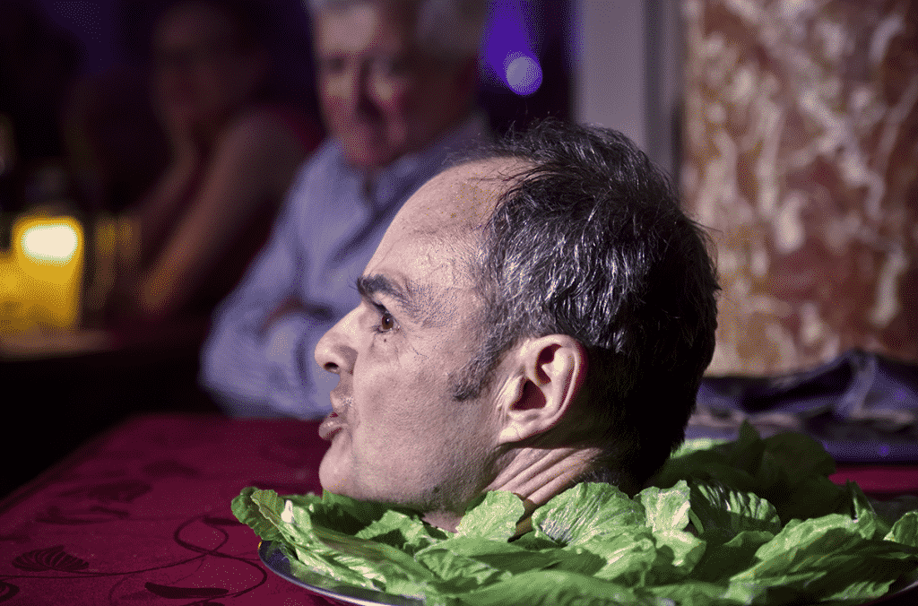 Valérie Lesort référence de manière assez habile son spectacle qui tient à la fois de la fête macabre et qui par son aspect un peu sanguinolent (pensons aux paroles du « Tango des bouchers » de Boris Vian chanté par Lionel Peintre avec beaucoup de gouaille, aux mains tachés de sang des chanteurs), rappelle l’esprit du théâtre Grand-Guignol. Mais c’est aussi au cinéma qu’elle fait appel. L’orgue n’est pas sans évoquer de vieux films de vampire tout comme il peut rappeler aussi que l’instrument était très prisé dans les salles de spectacle à la fois en tant qu’instrument accompagnateur du film et qu’il servait, enfin, à intercaler des interludes. C’est le cas ici, où avant l’air de la Folie de Platée, la pianiste prélude une pièce dans un style qui peut rappeler Bach. On sera également sensible aux effets de lumière bien choisis et à propos. C’est le cas par exemple avec l’Air du Feu, dans l’Enfant et les sortilèges de Ravel, où se succèdent des effets jaune-orangé tandis que l’on entend, grâce aux poils d’un balai placé très près du micro, le crépitement du feu. Si le spectacle est sur la scène, il est aussi dans la salle qui sert aux chanteurs : entrée fracassante, sous les projecteurs, de Judith Fa dans « Furie terribili » du Rinaldo de Haendel ou encore un Lionel Peintre qui, habillé d’un costume de squelette, se déhanche sur les rangées de la baignoire au son de La Danse macabre de Saint-Saëns.