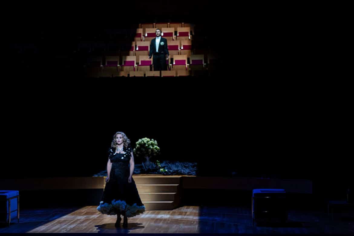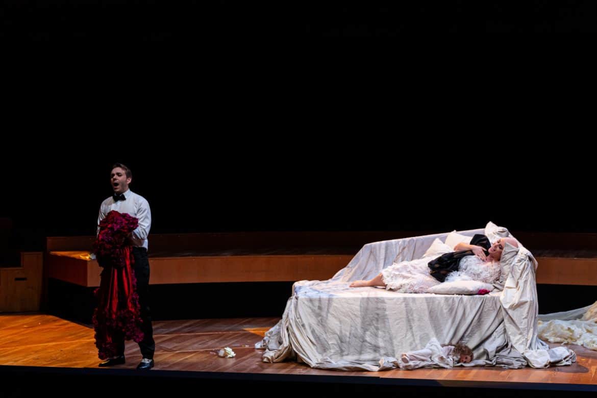 L’ouverture de saison d’un Opéra est toujours un événement très attendu, mais celle de l’Opéra de Bordeaux, en ce jeudi 17 septembre, l’était tout particulièrement, à plusieurs titres. Premier opéra donné à Bordeaux depuis le 15 mars dernier ; premier opéra en version scénique sur une scène nationale, semble-t-il, depuis la timide reprise qui s’est amorcée ces derniers jours ; et enfin, prise de rôle de Rachel Willis-Sørensen en Violetta. L’émotion est palpable dans le public, et la salle est « comble » – enfin, un siège sur deux seulement est occupé, Covid oblige, et la prestation a lieu dans l’Auditorium de Bordeaux, et non dans la salle du Grand-Théâtre.