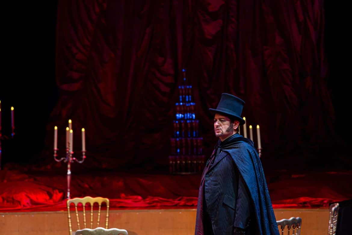 Le baryton Lionel Lhote fait une prestation stupéfiante (longueur du souffle, variété des nuances, goût impeccable), et réussit le tour de force de hisser le personnage de Germont père au sommet où évoluent Alfredo et Violetta. Benjamin Bernheim, enfin, est un Alfredo chaleureux, ensorcelant de tendresse lyrique, de douceur, mais aussi de rage jalouse à l’acte II. Sans doute une des incarnations d’Alfredo les plus attachantes qu’on puisse applaudir aujourd’hui.