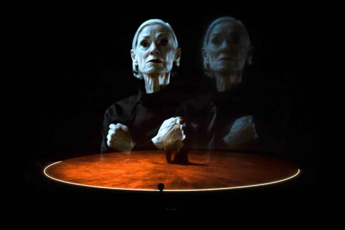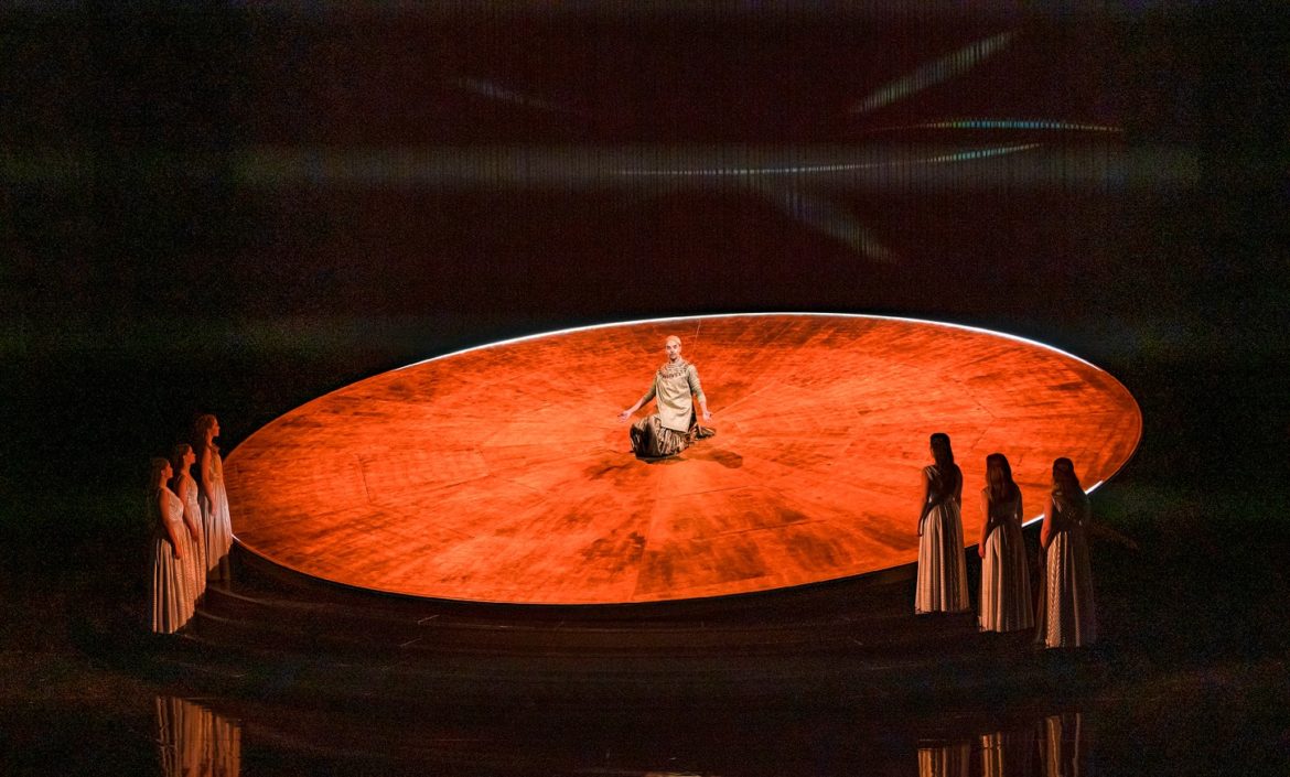 Là-dessus Philip Glass structure son œuvre avec le sens de la mémoire et de la profondeur : le prélude donne des clefs : la pente des motifs rythmo mélodique à la fois descendante et montante possède quelque chose de la ritournelle de l’Orfeo du même Monteverdi, et se retrouvera à des moments charnières, comme à la fin de la première scène, ou encore pendant l’hymne au soleil et évidemment à la fin de l’œuvre. Ce n’est pas la seule influence, l’orchestration se souvient d’Aida de Verdi, de la Cleopatra de Barber, les voix de Britten (de la Sérénade pour Cor à Oberon), ou du bel canto, mais un bel canto mêlé à une connaissance authentique des structures litaniques et des psalmodies liturgiques : le public a des références de son propre vécu musical mêlées aux patterns des arpèges, paysage plus que connu, mais qui invite à approfondir l’espace musical vers ce qui est plus intérieur, plus eschatologique. Et même, on doit le reconnaitre, si tout sonne un peu comme déjà entendu, tout sonne surtout « Philip Glass » et personnel – et ceci est d’un grand musicien. L’hypnose, la méditation que suscite le matériau minimaliste (pas si minimal car si riche en orchestration, en idées, en tensions menée jusqu’au paroxysme), tout cela est le fruit d’un dramaturge qui maîtrise son art à l’extrême.