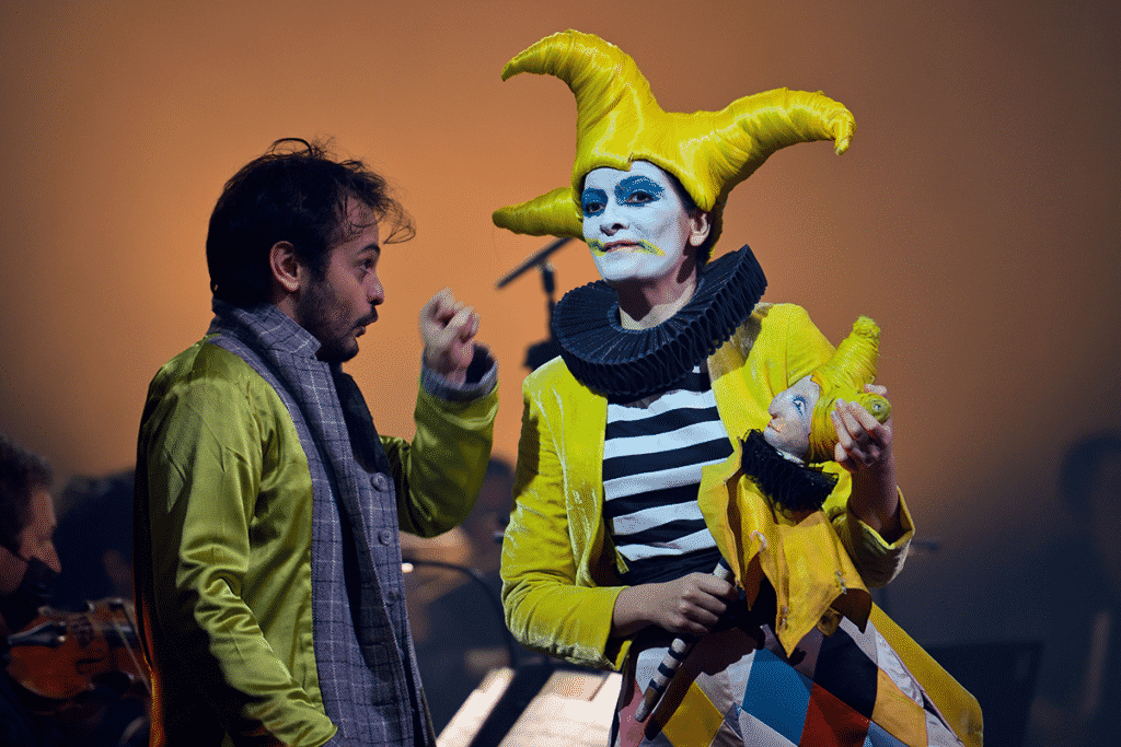 Quelle belle concordance entre l’univers visuel et la sélection lyrique française de ce concert-spectacle ! Cette soirée ravive notre plaisir de « spectateur dans un fauteuil », et pour certain.e.s quelques souvenirs de spectacles réussis de l’Opéra-Comique, tels Zampa, Fantasio ou Hamlet.